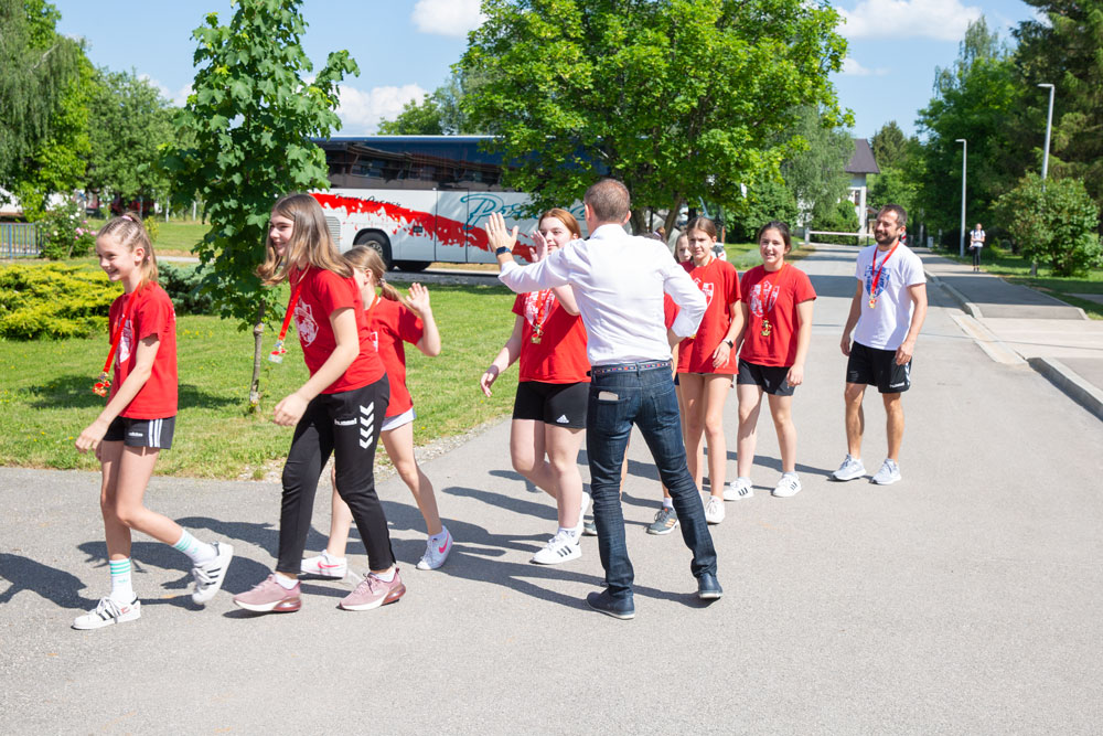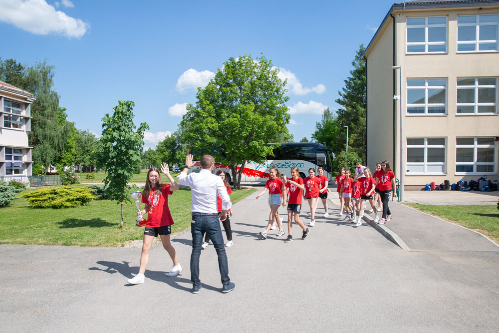 Djevojčice-prvakinje danas su na povratku doma dočekali ravnatelj Ivica Radošević, zamjenica ličko-senjskog župana Jasna Orešković Brkljačić, roditelji i mnogi učenici. Kako je tada istaknuo ravnatelj škole Ivica Radošević čestitke najprije idu uspješnim djevojčicama: