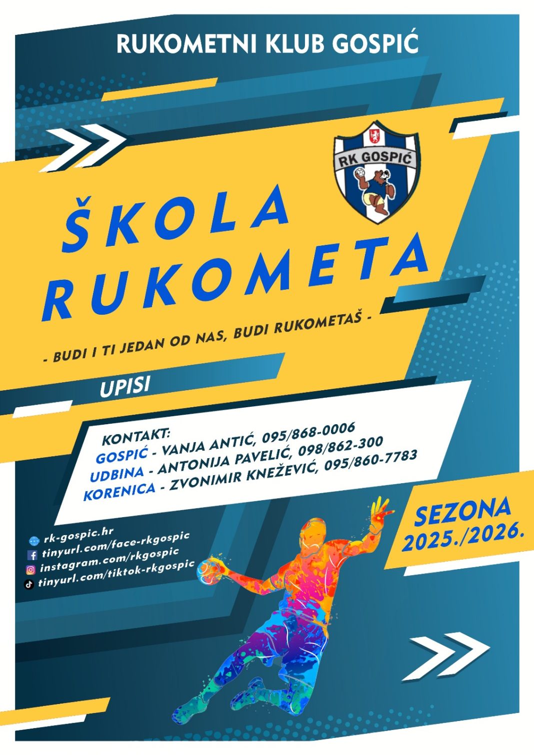 Rukometni klub „Gospić“ započeo je upise novih članova i poziva dječake i djevojčice svih uzrasta da se priključe treninzima u Gospiću, Udbini i Korenici. Nova sezona donosi bogat program ispunjen igrom, druženjem i sportskim izazovima.