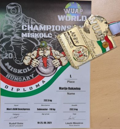 Prošli tjedan u Mađarskoj održano je Svjetsko prvenstvo u powerliftingu, bench pressu i mrtvom dizanju po pravilima WUAP powerlifting federacije. Grad Miskolc ugostio je najbolje dizače iz cijelog svijeta, a u bench pressu Hrvatsku je predstavljao Gospićanin Marijo Rukavina Rux, inače predsjednik WUAP federacije u Hrvatskoj.