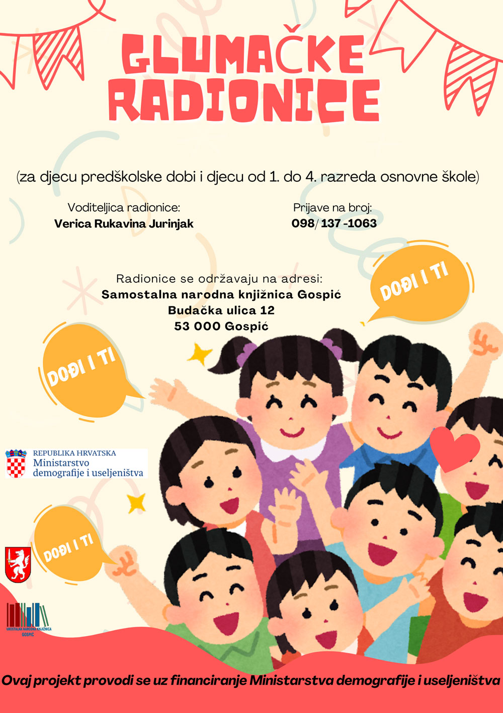 Radionica se održava na adresi: Budačka 12, Samostalna narodna knjižnica Gospić.