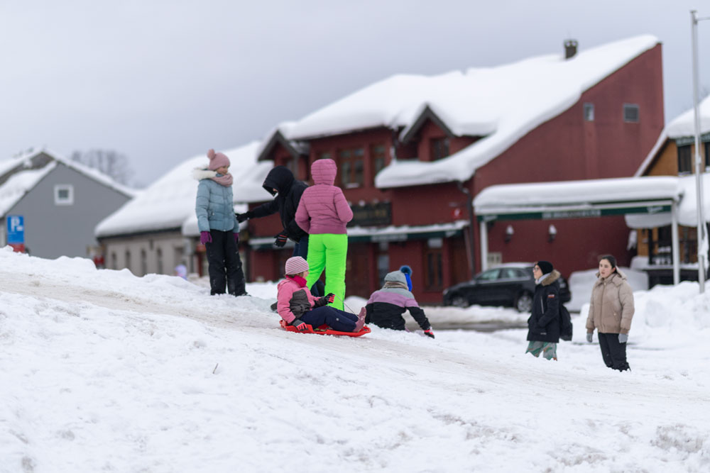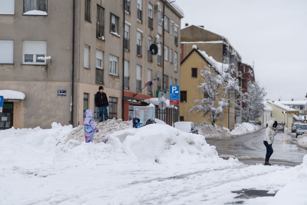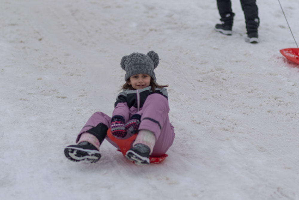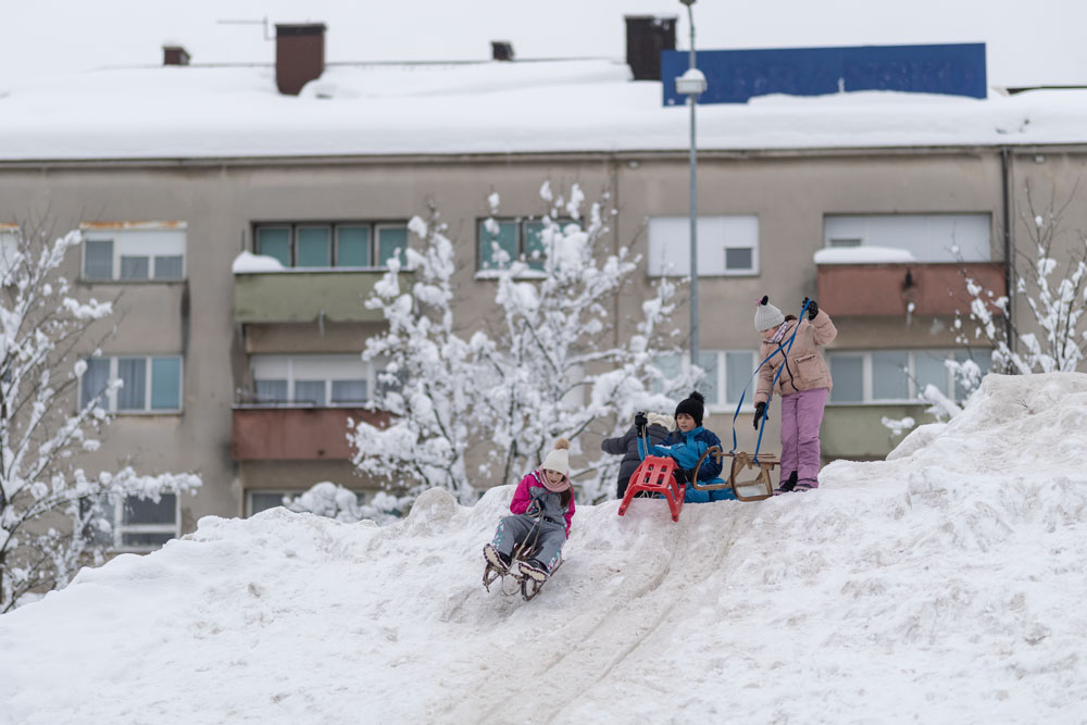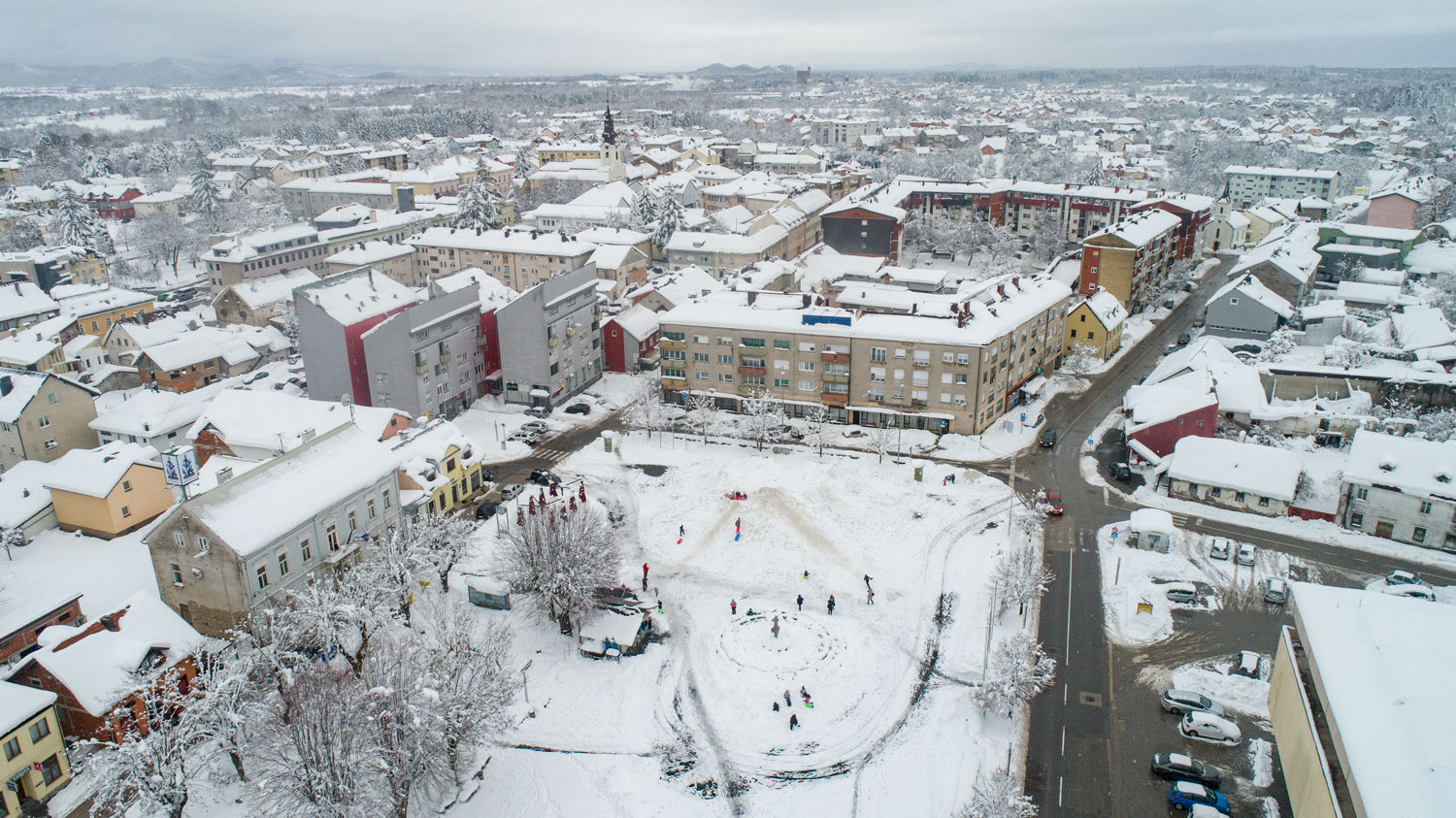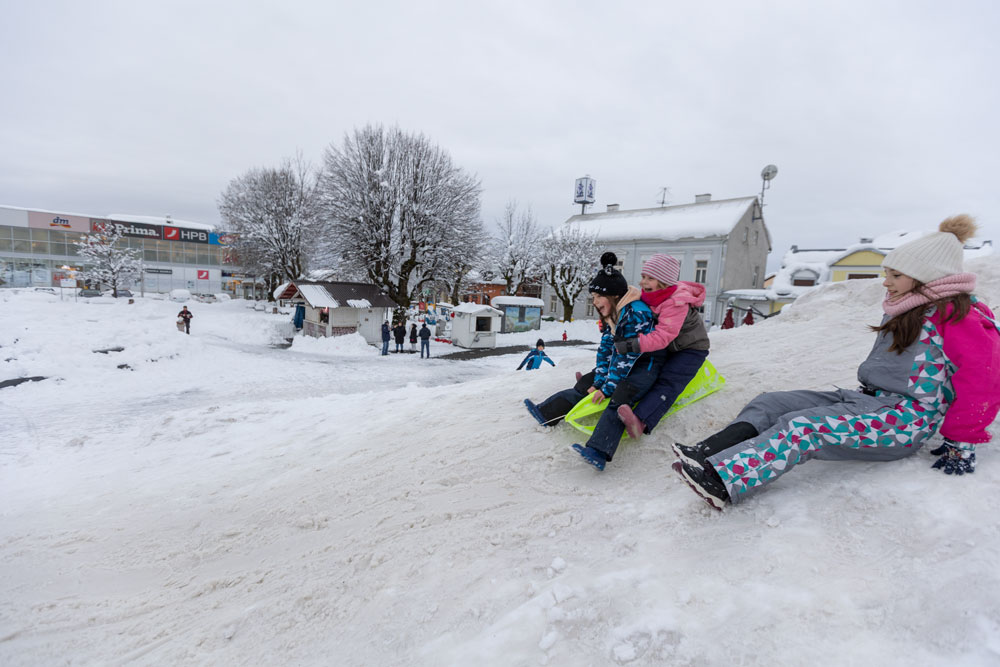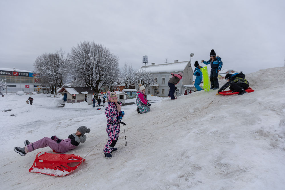 Višak snijega s gospićkih ulica deponiran je na Trgu Stjepana Radića. Točnije dio snijega jer bi se u ukupnoj količini tog ledenog balasta mogla načiniti 3-4 sanjkališta. Samo dio klinaca stigli su danas na sanjkalište. Neki su poveli roditelje, neki kućne ljubimce, neki donijeli sanke. Došli su i neki nadobudni klinci i spuštali se niz umjetno sanjkalište na svojim skafanderima.