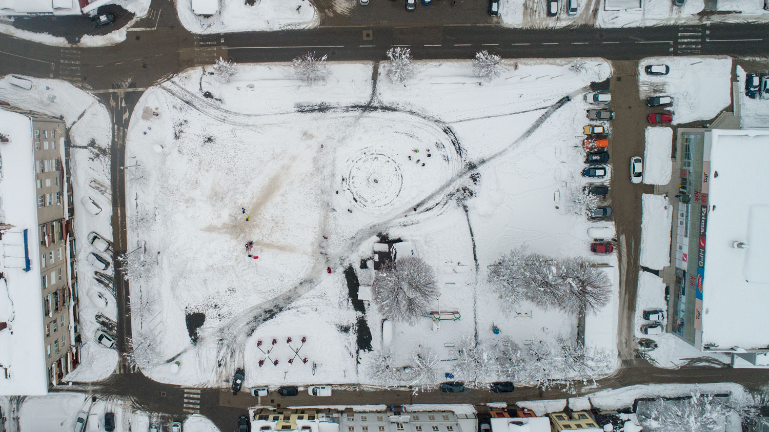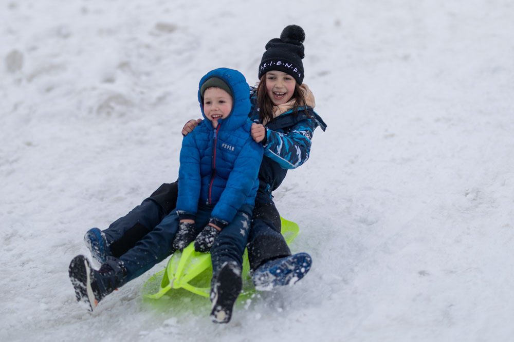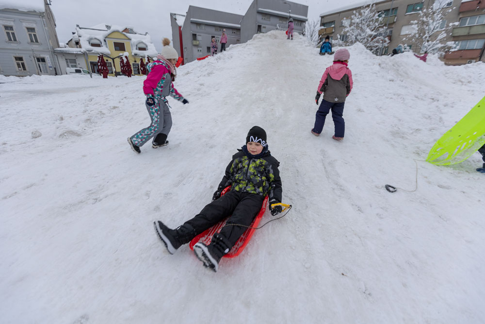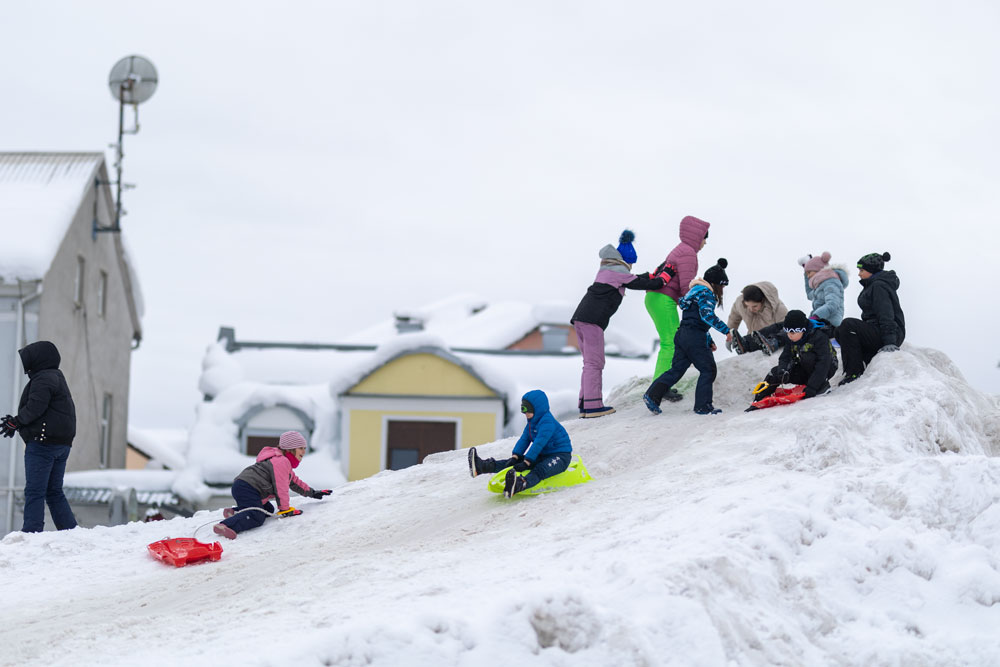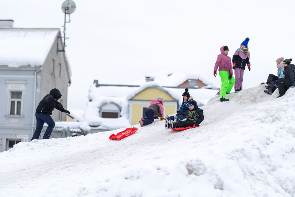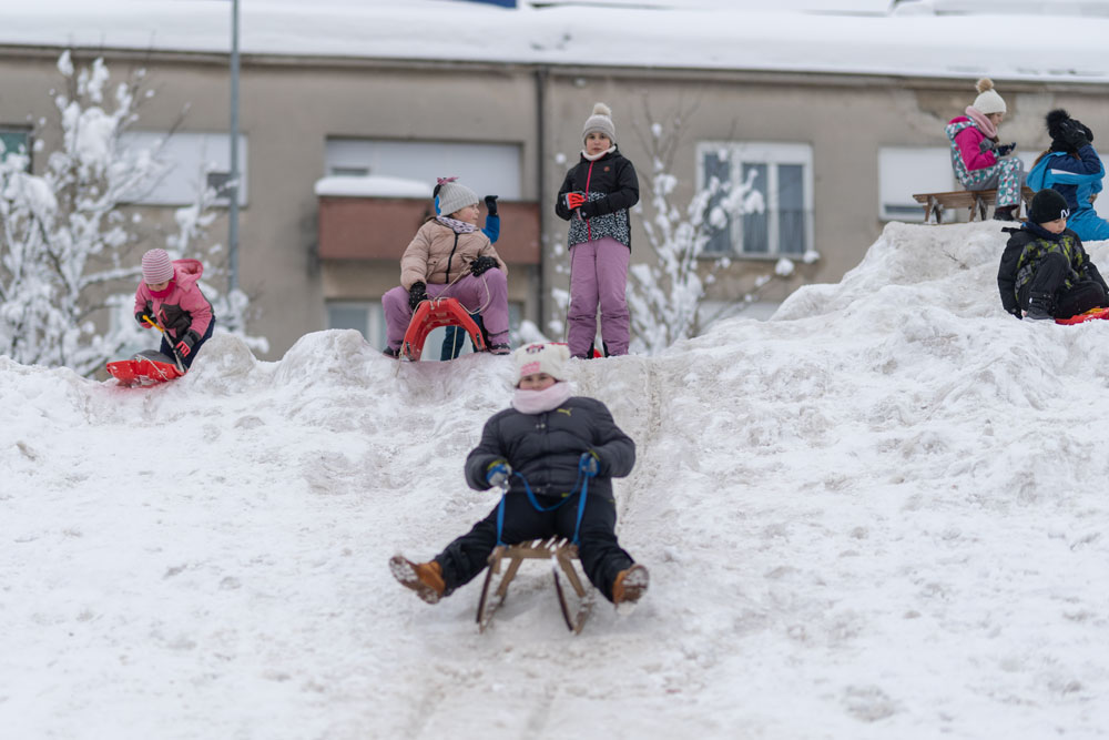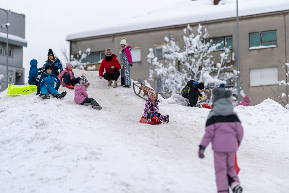 Višak snijega s gospićkih ulica deponiran je na Trgu Stjepana Radića. Točnije dio snijega jer bi se u ukupnoj količini tog ledenog balasta mogla načiniti 3-4 sanjkališta. Samo dio klinaca stigli su danas na sanjkalište. Neki su poveli roditelje, neki kućne ljubimce, neki donijeli sanke. Došli su i neki nadobudni klinci i spuštali se niz umjetno sanjkalište na svojim skafanderima.
