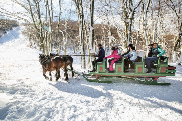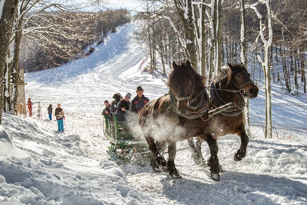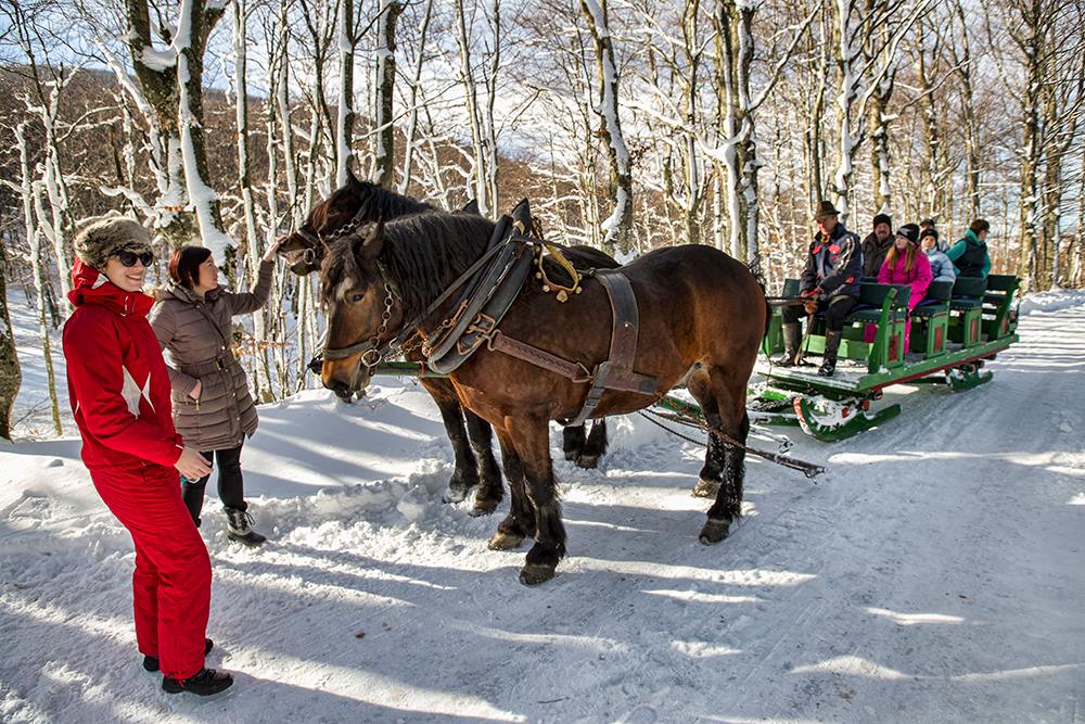 Osim uživanja na skijama i sanjkama, posjetitelji na Baškim Oštarijama danas su imali priliku provesti se u saonicama koje su upregnuli konji. Dva konja i zimska idila Terezijanske staze mnoge je vratila u prošlost, kada su zime bile veće i hladnije, a ovakav način putovanja uobičajen.