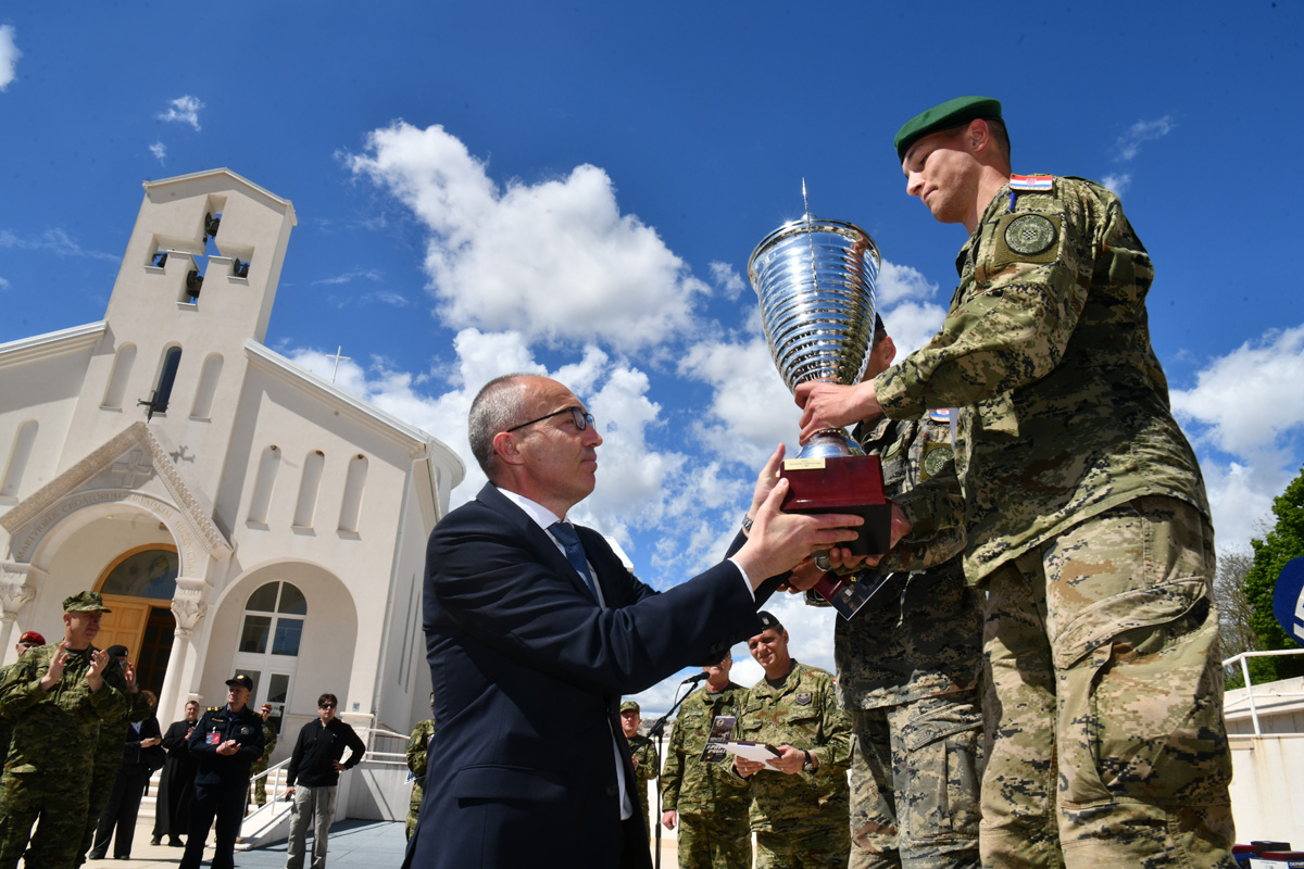 „Nikola, uručujem ti ovaj pehar kao najspremnijem pripadniku Hrvatske vojske“, poručio je ministar Krstičević čestitajući najspremnijem pripadniku te dodao: „Pokazao si vrhunsku spremnost, sposobnost, snagu, požrtvovnost i odlučnost hrvatskog vojnika“.