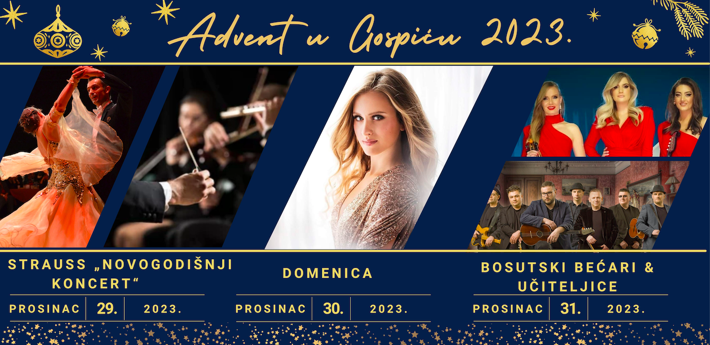 Kako nam se bliži Nova godina tako počinju pripreme za događajima bogat tjedan Adventa u Gospiću. Sve počinje već u petak 29. prosinca kada se održava jedan poseban kulturni događaj – Strauss „Novogodišnji koncert“ simfonijskog orkestra Kharkivskog nacionalnog akademskog kazališta, spektakl ozbiljne glazbe i plesa, bal kakvog nemamo često prilike vidjeti. Na koncertu će solisti i simfonijski orkestar Kharkivskog nacionalnog akademskog kazališta opere i baleta pod ravnanjem dirigenta Dmitra Morozova izvoditi djela Johana Straussa.