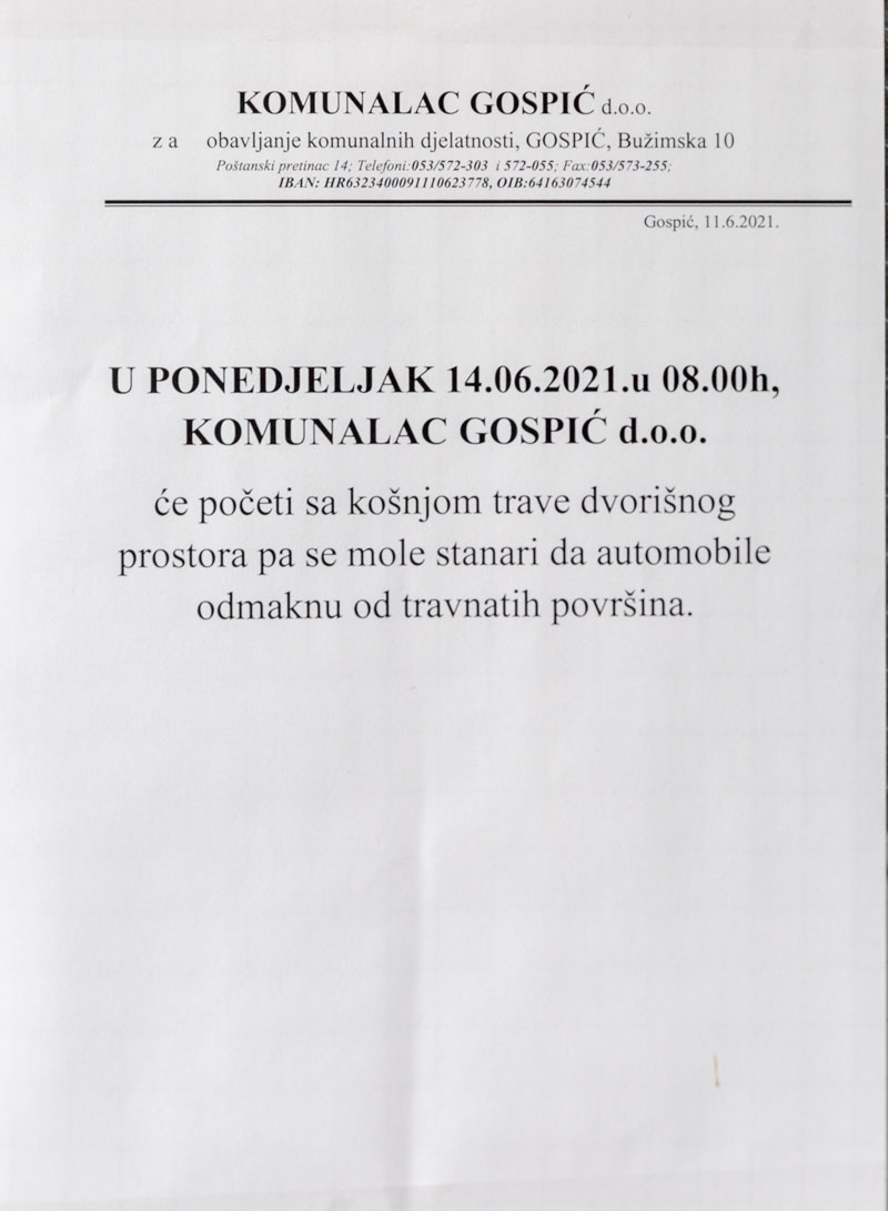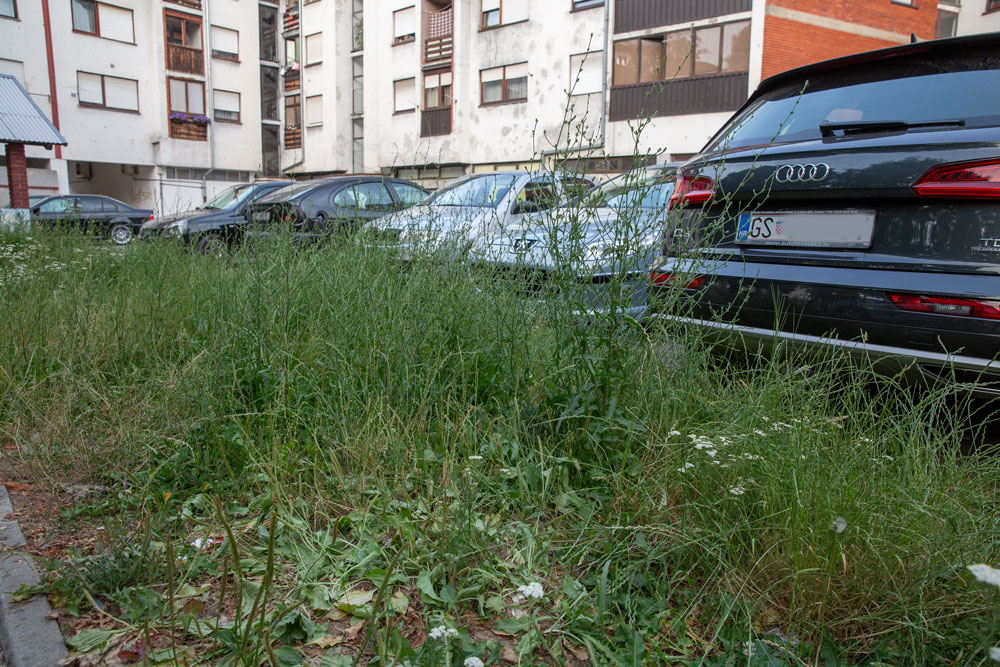 Iako je bilo objavljeno da će se prije nekoliko dana pokositi i urediti trava na zelenim površinama, ništa se nije dogodilo. Dvorište Uglovnice je zaraslo, prljavo i neodržavano. Možda je rješenje da svaki ulaz zaduži trimer i da stanari sami prionu na posao.