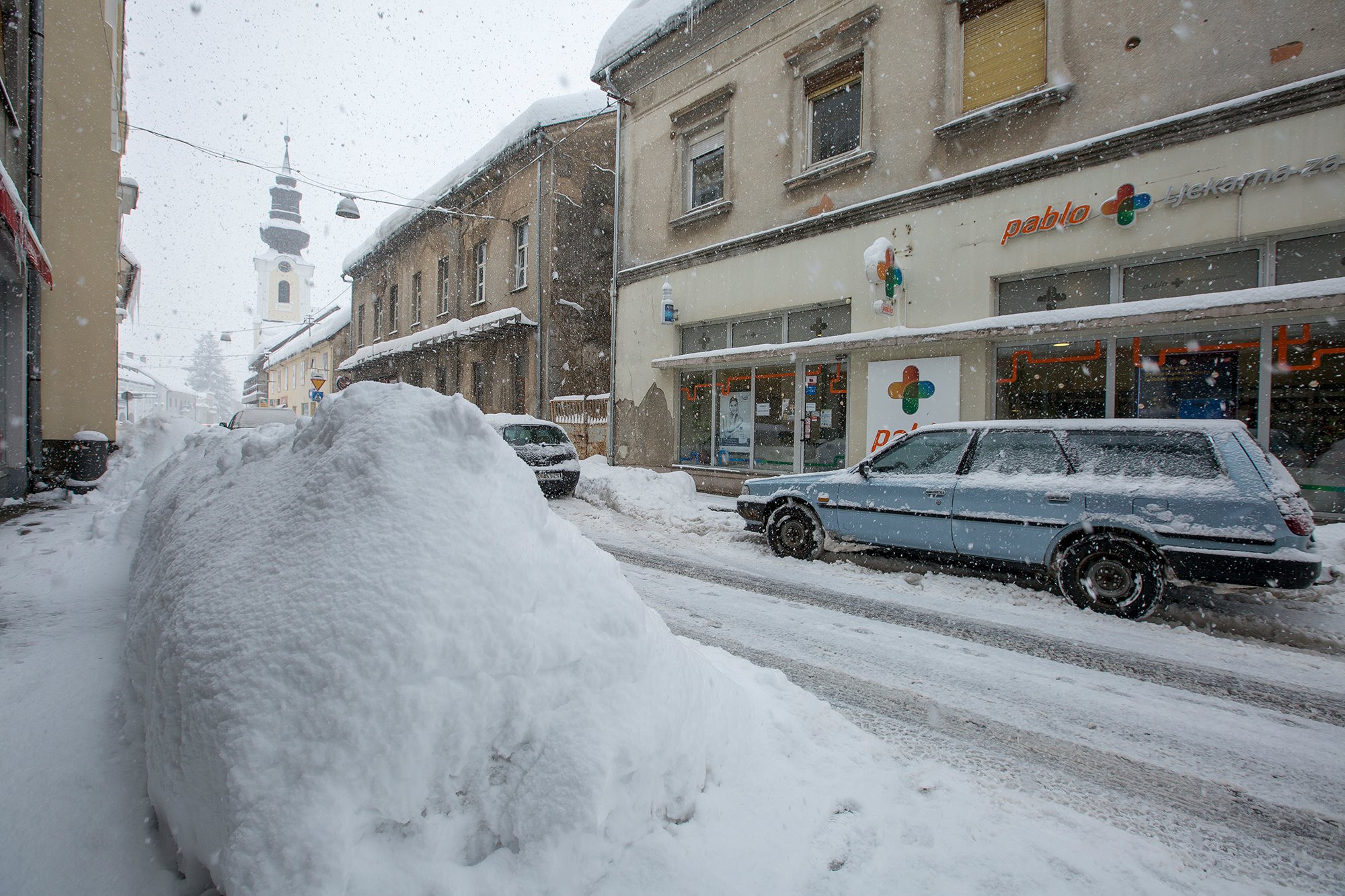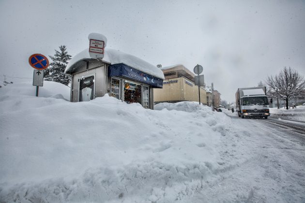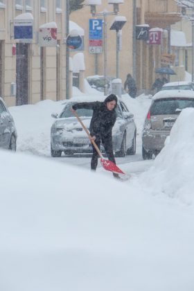 Gospić jutros u 7 sati službeno mjeri 77cm snijega. Do kraja dana moglo bi ga biti i preko metar! Po gradu je pravi kaos, ralice čiste, a za njima se odmah stvara novi sloj snijega.
