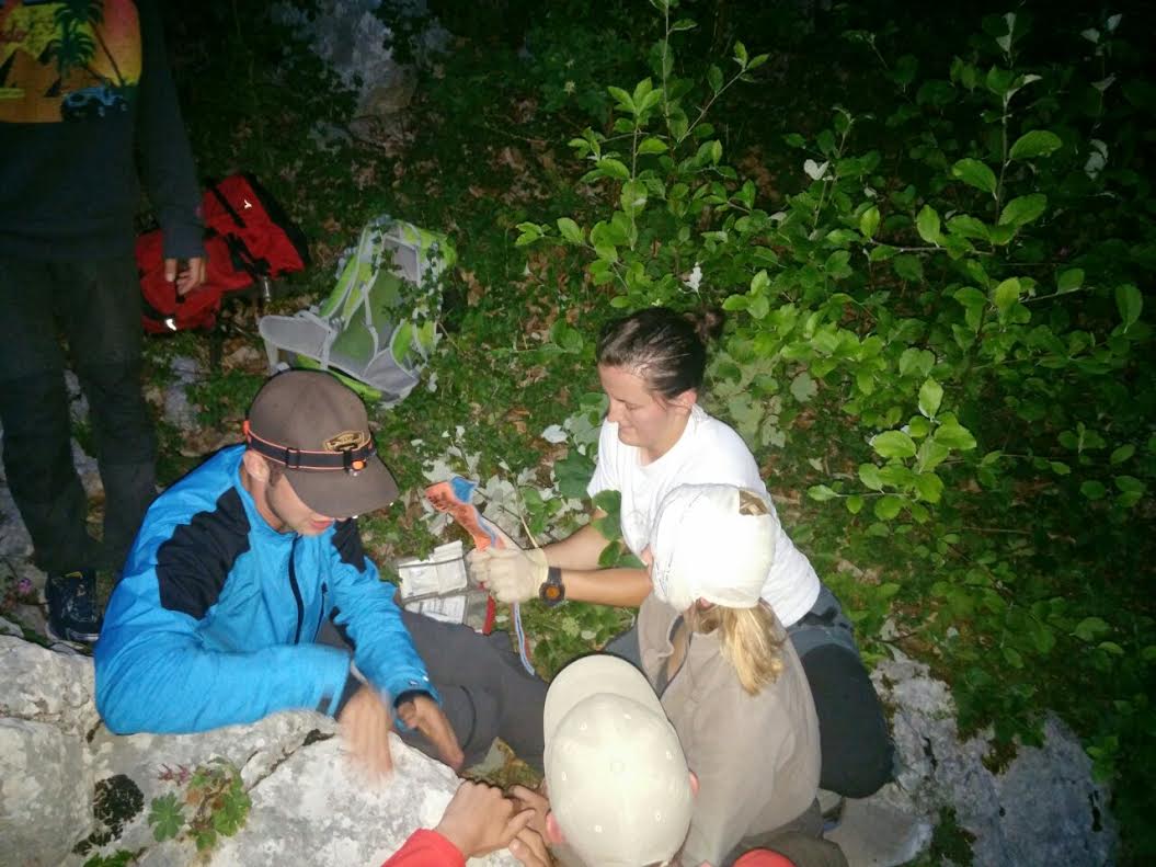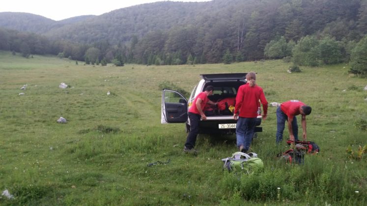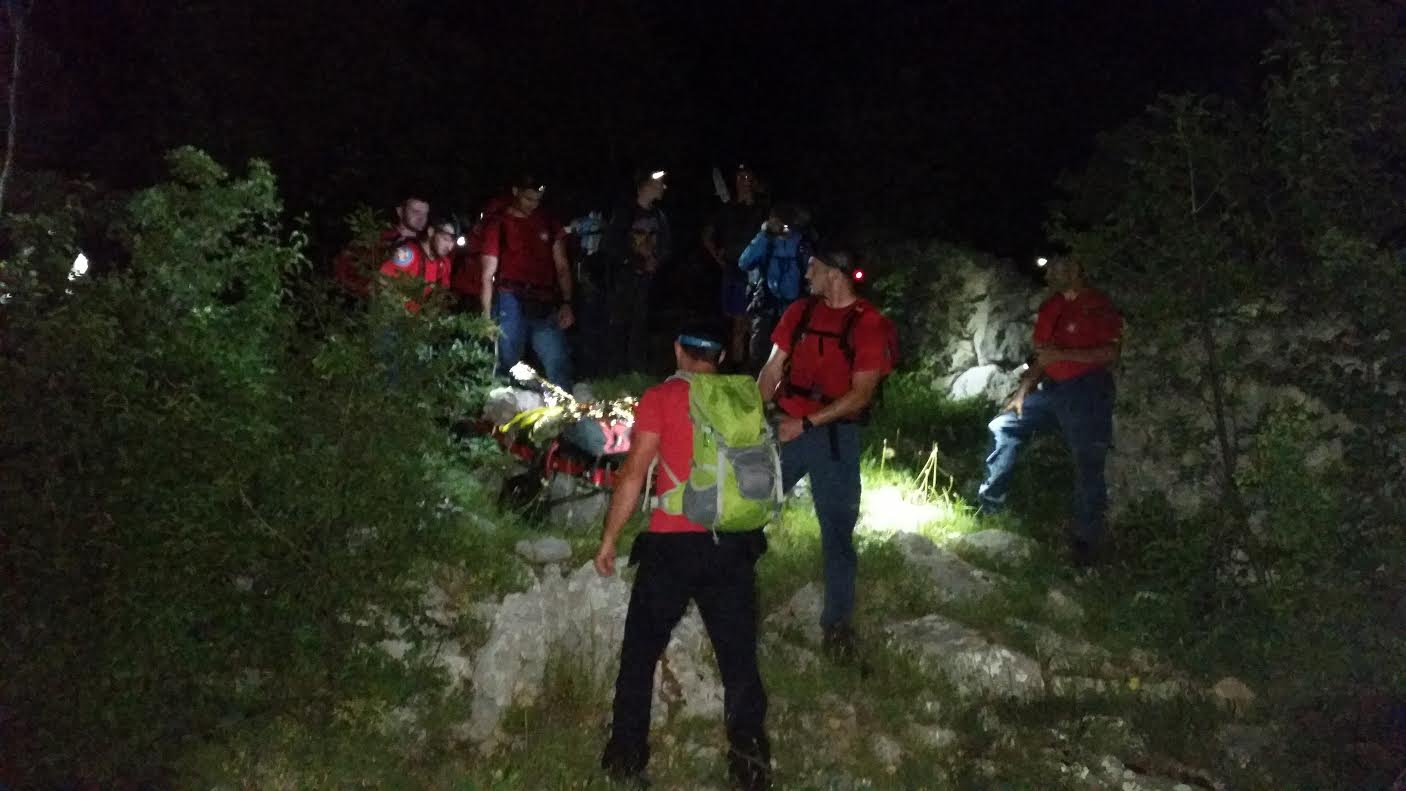 U tom trenutku preko ŽC 112 Gospić pozvan je helikopter u pomoć a 12 spašavatelja s dva vozila u dva tima krenula su prema mjestu nezgode, jedni iz pravca zavižana prema Gornjoj Kladi i drugi iz pravca mora (Gornje Klade) prema Babrovači (Zavižanu). Oko 21 sat helikopter locira mjesto nezgode i pokušava pronaći mjesto za slijetanje pošto spašavanje iz zraka na samoj lokaciji nije bilo moguće. Nakon što je prvi tim spašavatelja stigao do unesrećene i pružio prvu pomoć, a helikopter zbog nemogućnosti intervencije napustio mjesto, unesrećena je pripremljena za duži transport u nosila UT 2000 i spašavatelji su odlučili da se krene prema Gornjoj Kladi.
