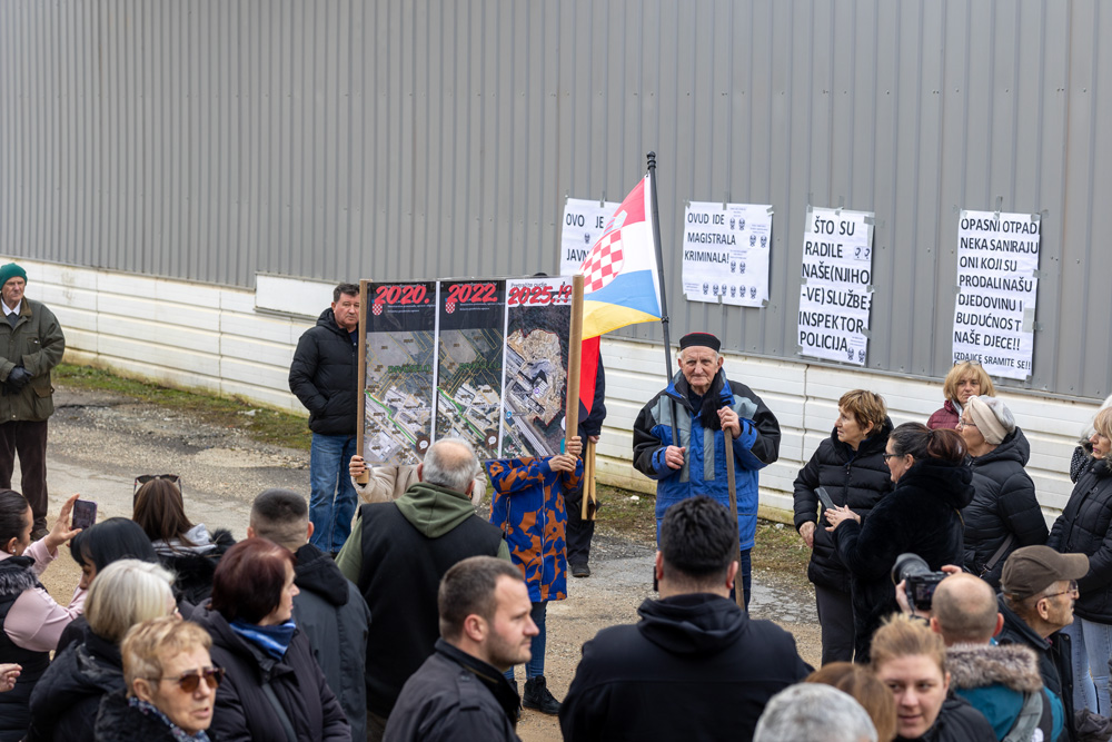 Prosvjed je reakcija na otkrića USKOK-ove istrage koja je razotkrila ilegalno odlaganje 35 tisuća kubika otpada. Prema istražiteljima, za nezakonito odlaganje sumnjiči se poduzetnika Josipa Šinceka sa suradnicima.