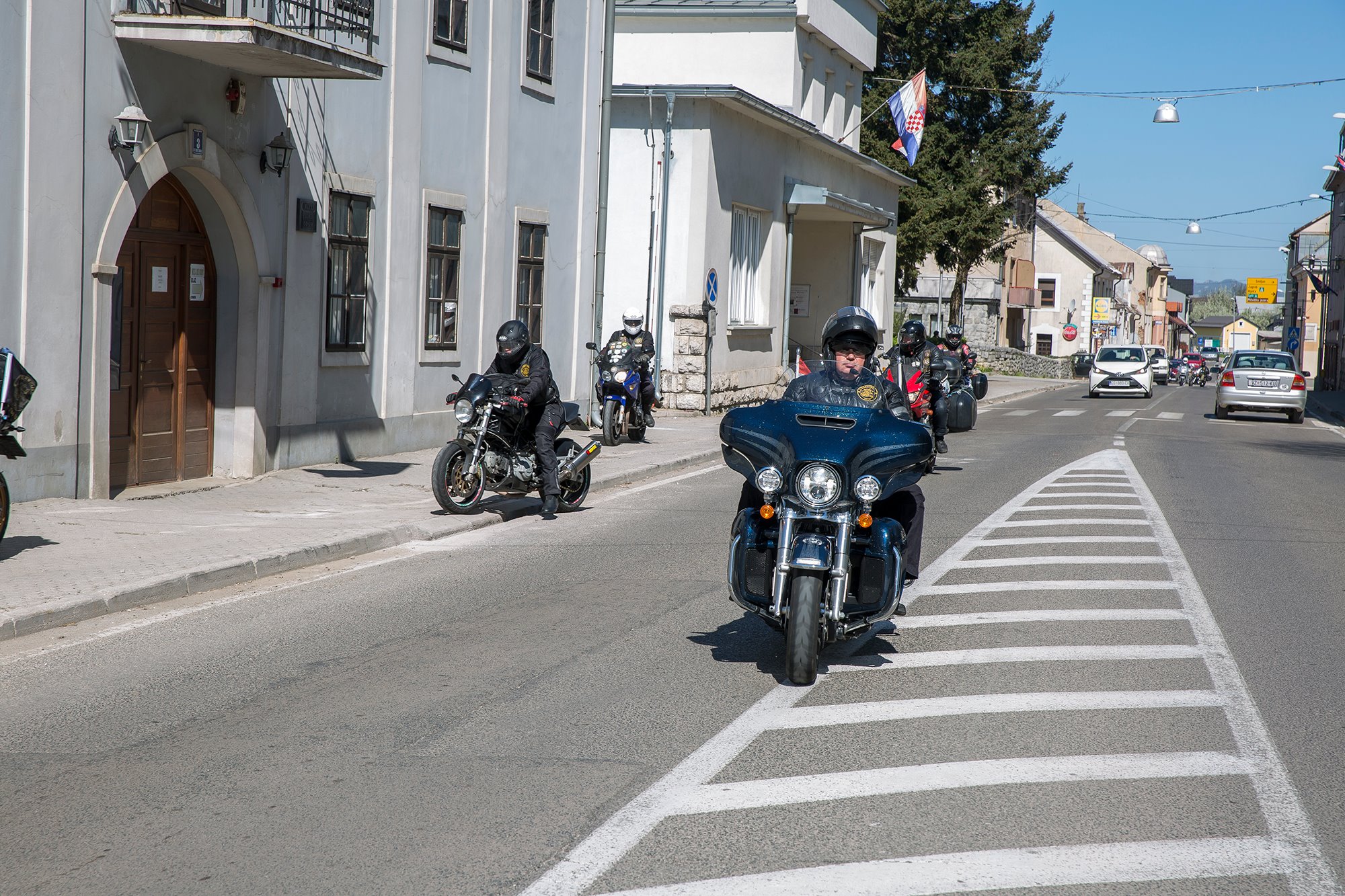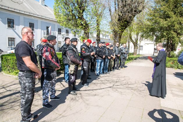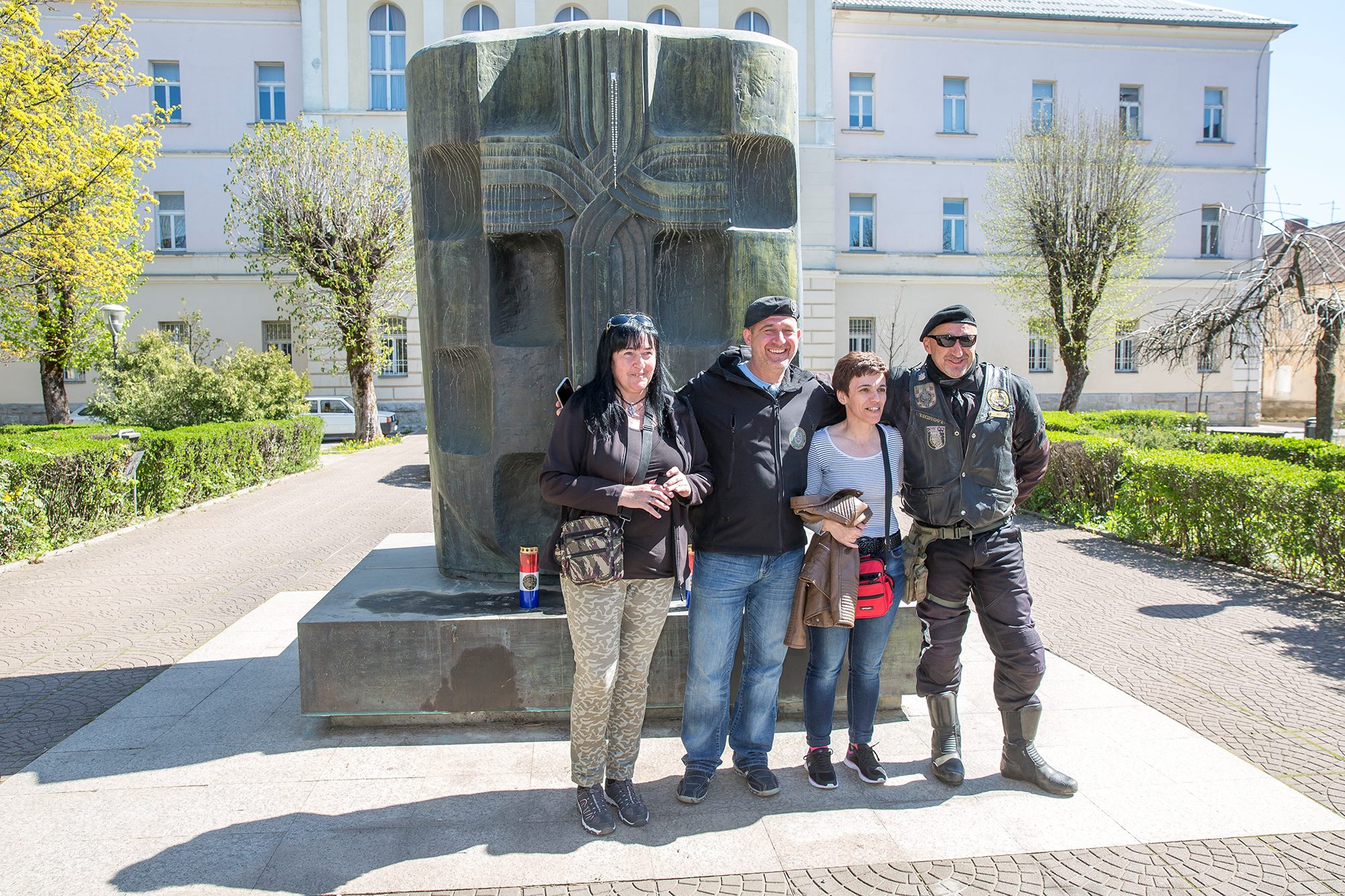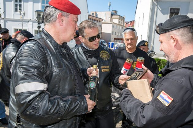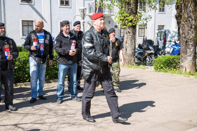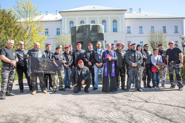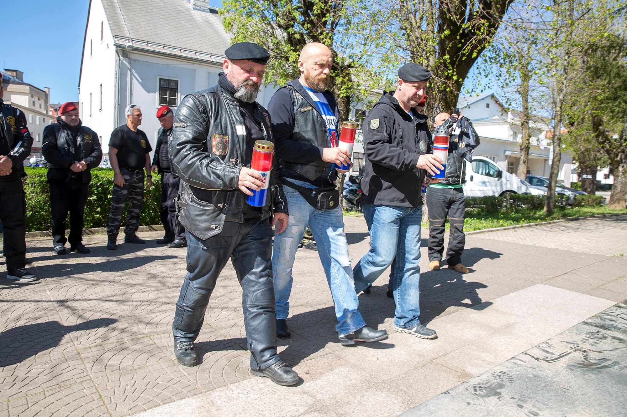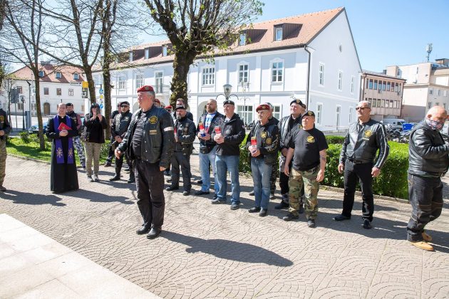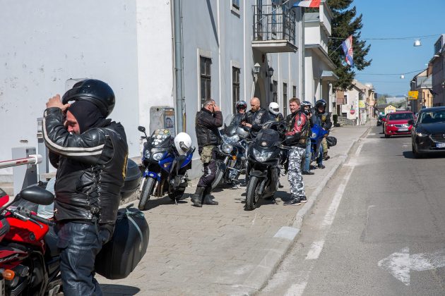 Ispred spomen-obilježja poginulim hrvatskim braniteljima i civilnim žrtvama Domovinskog rata karavanu bajkera dočekali su članovi Kluba ratnih veterana 9. gardijske brigade „Vukovi“ koju je predvodio tajnik Kluba Siniša Troha. Zapaljene su svijeće i kazivane molitve koje je predvodio gospićki župnik vlč. Mario Vazgeč. Potom su Siniša Troha i predsjednik Moto-kluba 4. gbr. Zlatko Borojević razmjenili plakete brigada i ponovili nastojanja svih pripadnika gardijskih brigada da se nikada ne zaboravi Domovinski rat, njegovi branitelji i žrtve. Karavana nastavlja put i prije konca travnja posjetit će Vukovar.