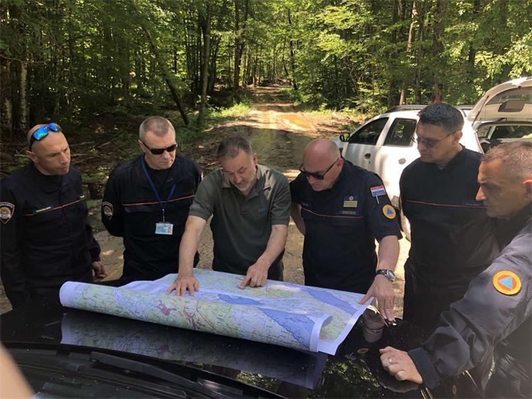 Pomoćnik ministra dr. sc. Damir Trut, koordinatori za poslove civilne zaštite Marijana Klanac, Darko Majstorović i Neven Karas, načelnik Hrvatskog centra za razminiranje Nikša Bogdanić te pročelnik Područnog ureda civilne zaštite Rijeka Matko Škalamera i voditelj Službe civilne zaštite Gospić Joso Živković su jučer obišli poslove razminiranja u okviru projekta Fearless Velebit.