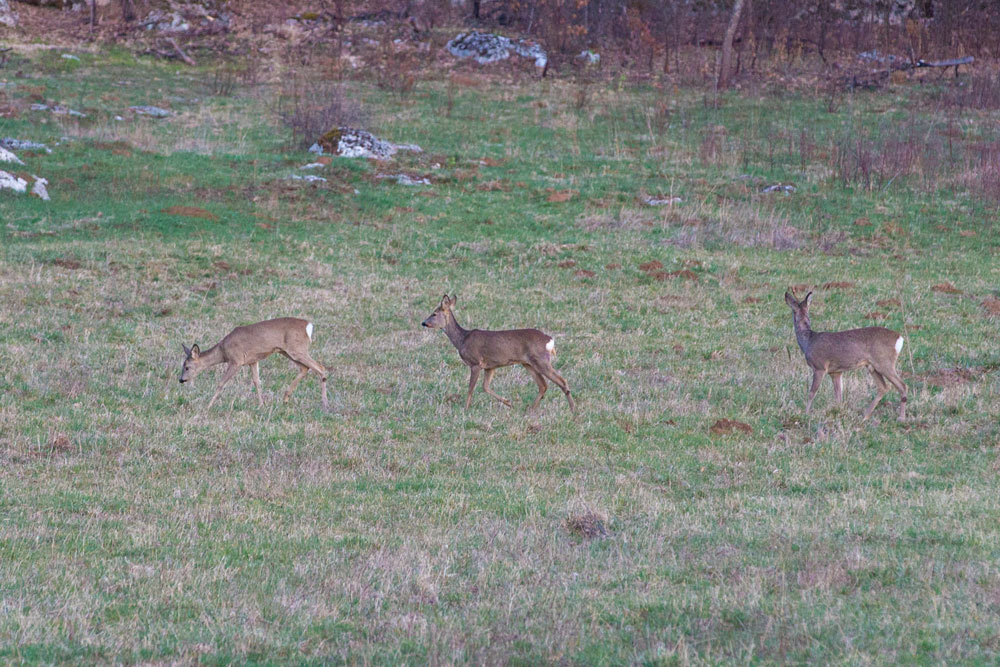 Vozeći se u okolici Gospića nailazimo na pomalo zaboravljene scene. Svako malo pojavi se po nekoliko srna. U grupama od po 3-4 primjerka bezazleno pasu tek niknulu travu, ne boje se ljudi niti automobila. Jedanaest primjeraka vidjeli smo u svega nekoliko minuta. Ovo je pravo bogatstvo i dobar znak iz više razloga. Najviše zato što znači da se i krivolovci pridržavaju izolacije!