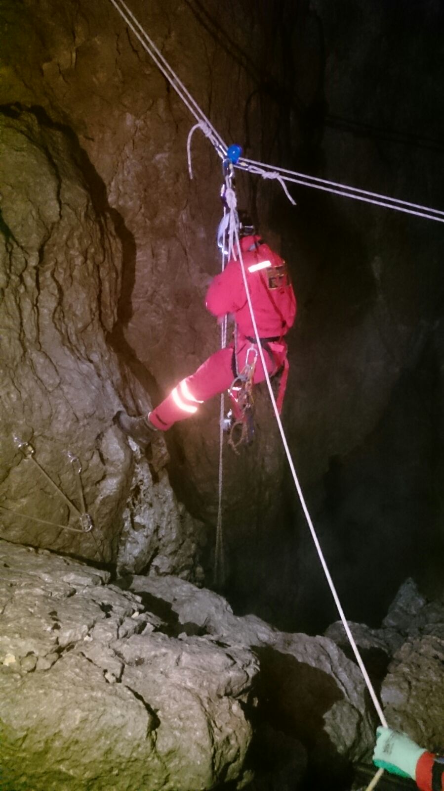 Nakon što su ekipe izradile sidrišta i isprobale sisteme za izvlačenje spustile su se na dubinu od 120-ak metara od kuda je bio predviđen početak transporta. Uslijedio je kraći odmor, a potom su se ekipe vratile na svoje pozicije i transport je započeo.