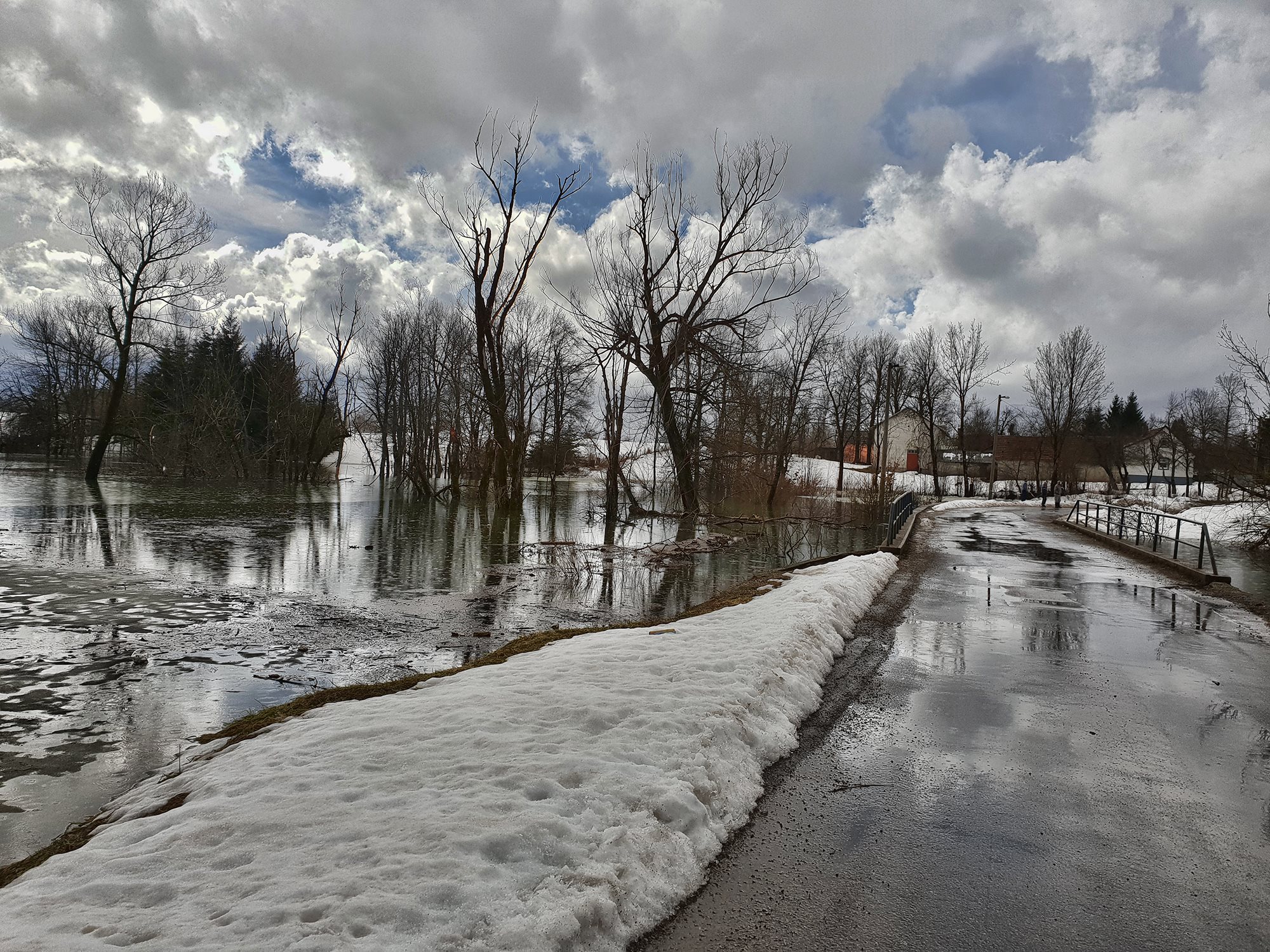 Prema riječima Mladena Vodičke vode ima i na nekim dijelovima ceste uz potok Tisovac u Pazarištima, nabujale su i rijeke Bogdanica i Novčica, voda se izlila preko nekih lokalnih cesta u Smiljanu pa i ekipe PUZS Gospić stalno obilaze teren. Nastavi li se s otapanjem snijega na višim predjelima za očekivati je najcrnji poplavni scenarij i prometno odsjecanje cijele Kosinjske doline, ali i nekoliko sela u okolici Gospića i Otočca.