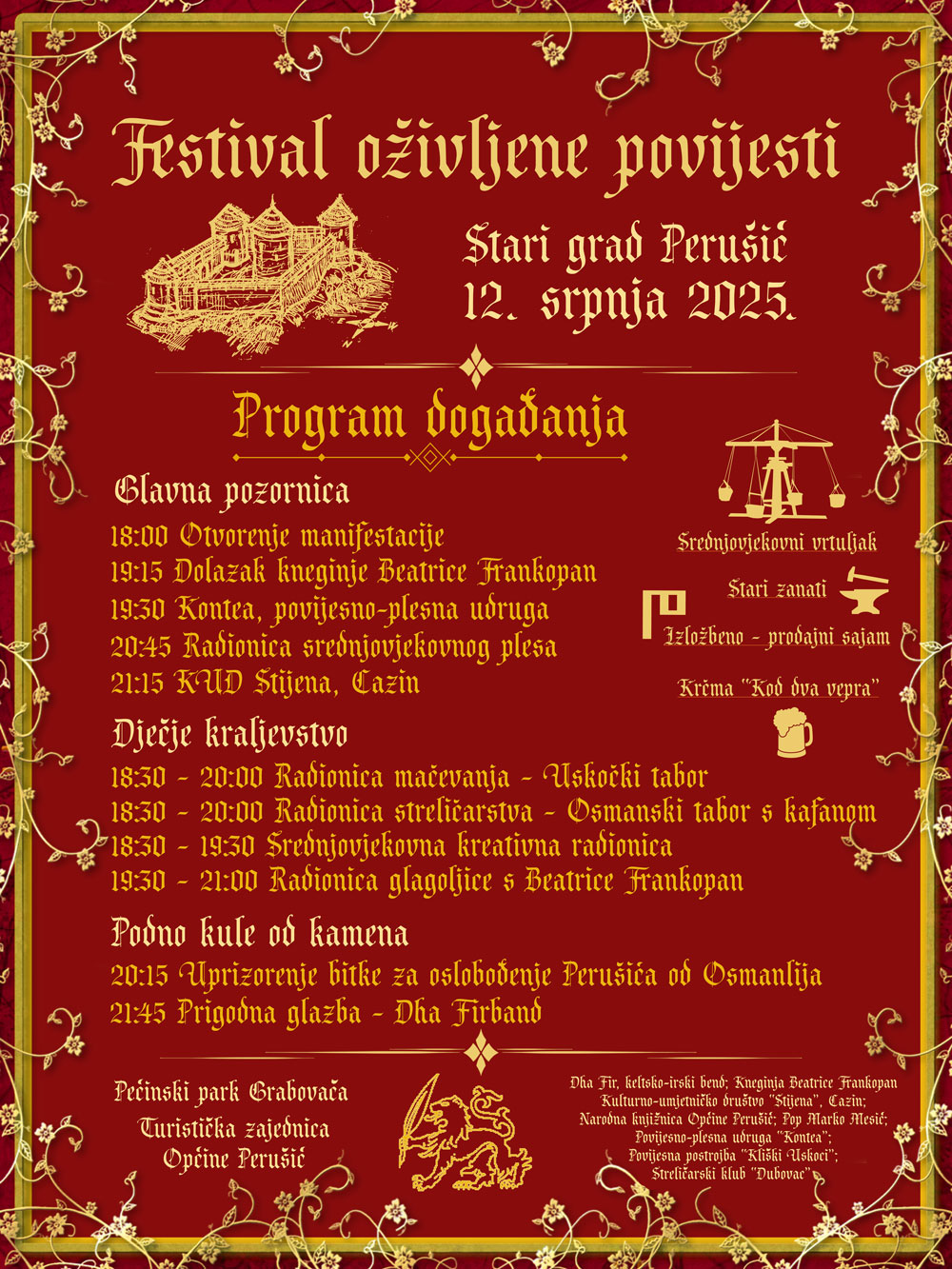 Nakon prošlogodišnjeg uspješnog izdanja koje je privuklo brojne posjetitelje, Festival oživljene povijesti ponovno dolazi u srce Like – na povijesne zidine Starog grada Perušića! Ove godine festival se održava 12. srpnja (subota), 2025., s još bogatijim programom, autentičnim prikazom povijesnog događaja i brojnim sadržajima za sve generacije.