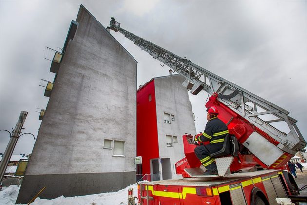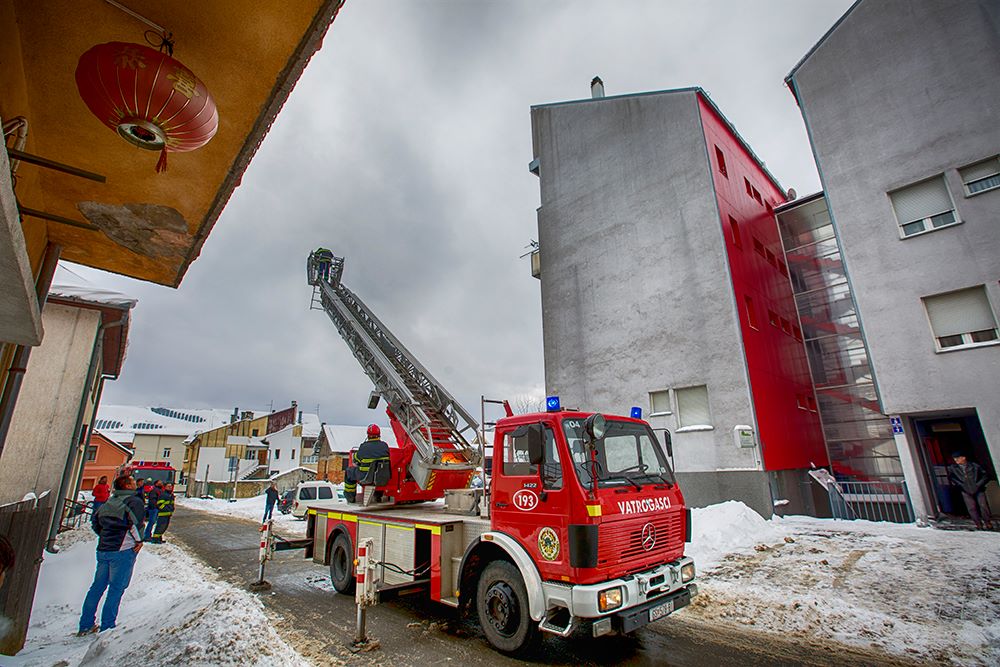 Stanari jednog dijela zgrade u Teslinoj ulici u Gospiću, (ne)popularno zvane „šajkača“ već neko vrijeme imaju problema s grijanjem. Očito začepljen dimnjak stvara im probleme, što u ovo vrijeme teškim „minusa“ nije ugodno. Proteklih su dana u pomoć stizala vozila i djelatnici HEP-a i jednog privatnog poduzeća, ali prekratke ljestve nisu im omogućile penjanje na trokatnicu.