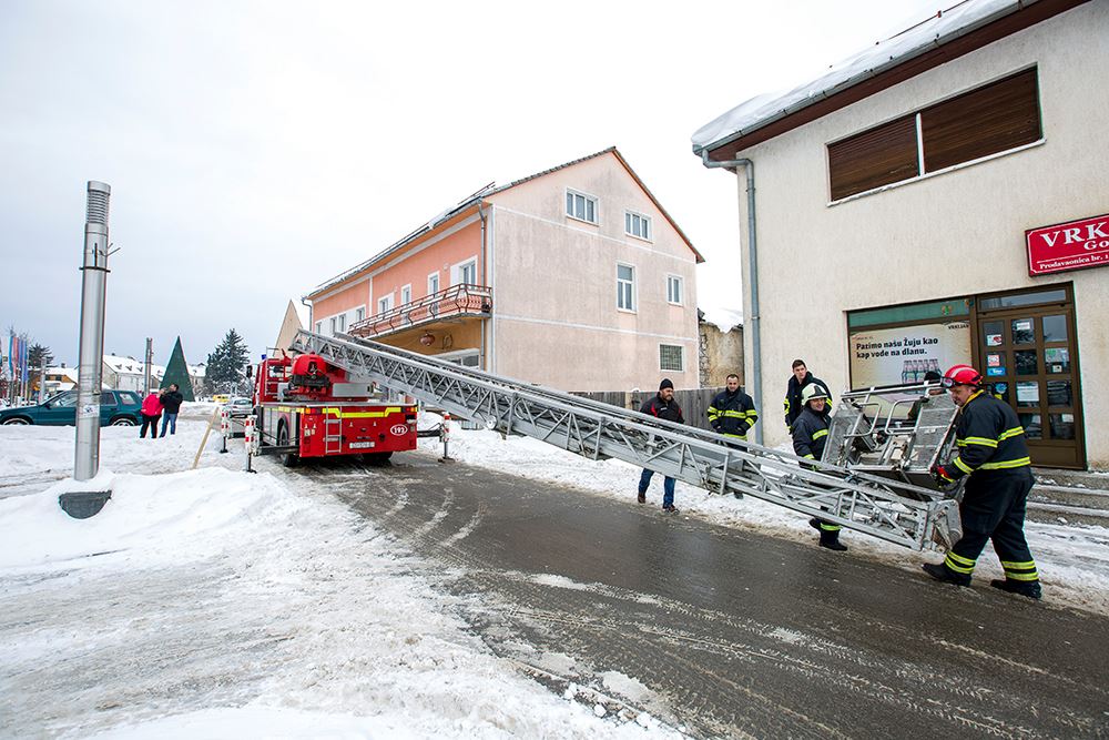 Danas su s vatrogasnim vozilom i 30-ak metara visokim ljestvama u pomoć pristigli članovi DVD-a Otočac. Led i niske temperature otežavaju pristup tzv. kapi dimnjaka, ali treba vjerovati da će Otočani u tome uspjeti i otkloniti kvar.