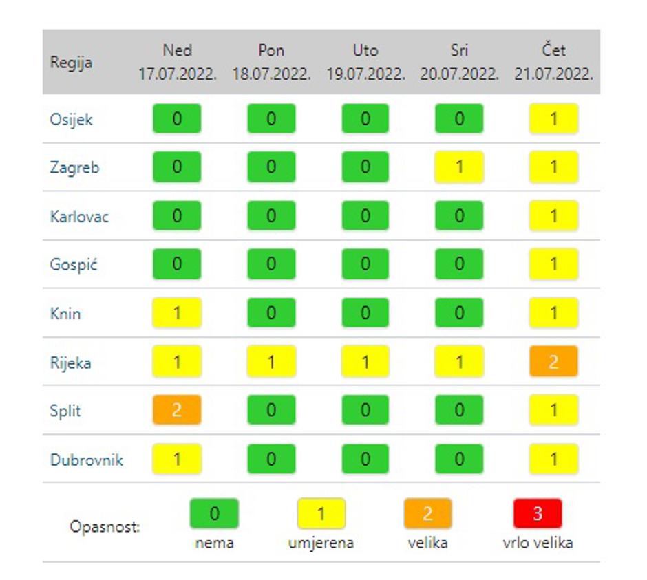 Sljedećih dana u unutrašnjosti pretežno sunčano i vruće, do srijede uz svakodnevni porast temperature. Samo će još u utorak jutro ponegdje biti razmjerno svježe. U četvrtak u sjeverozapadnim i sjevernim krajevima moguć je jači razvoj oblaka uz lokalne pljuskove i grmljavinu. I na Jadranu će biti sunčano i vruće uz uglavnom slab vjetar – ujutro bura, od sredine dana zapadni i sjeverozapadni, ponegdje i jugozapadni.”, prognozirala je Dunja Plačko-Vršnak.