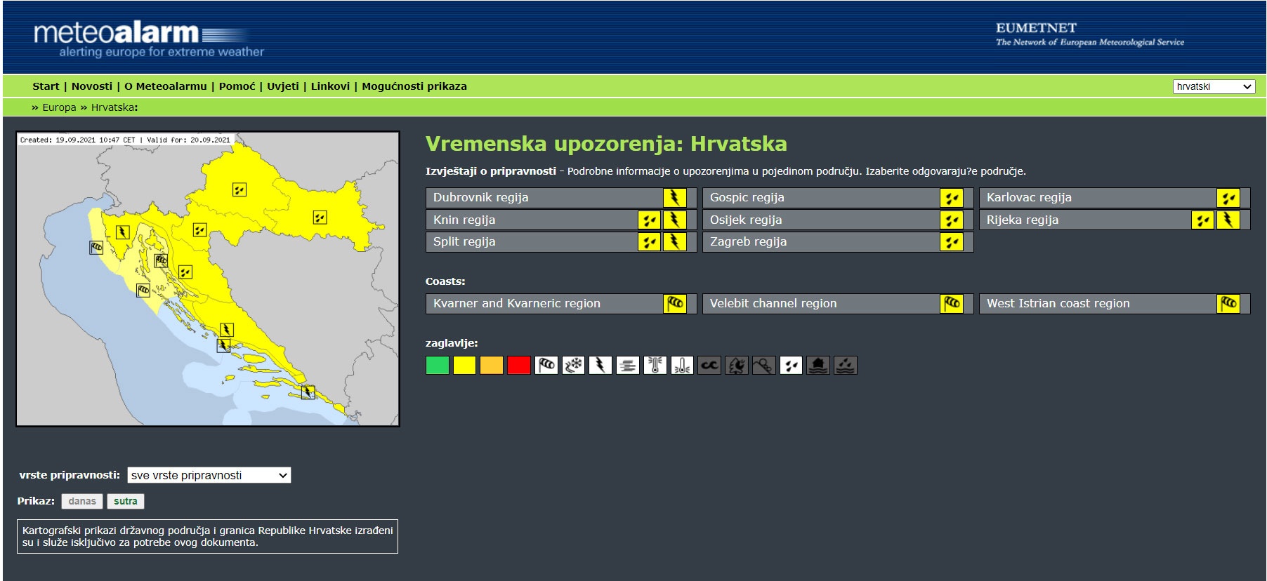 Za danas upaljen žuti meteoalarm za velik dio Hrvatske, sutra za cijelu zemlju