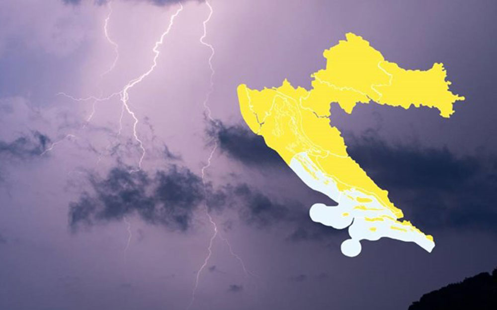 Za danas upaljen žuti meteoalarm za velik dio Hrvatske, sutra za cijelu zemlju