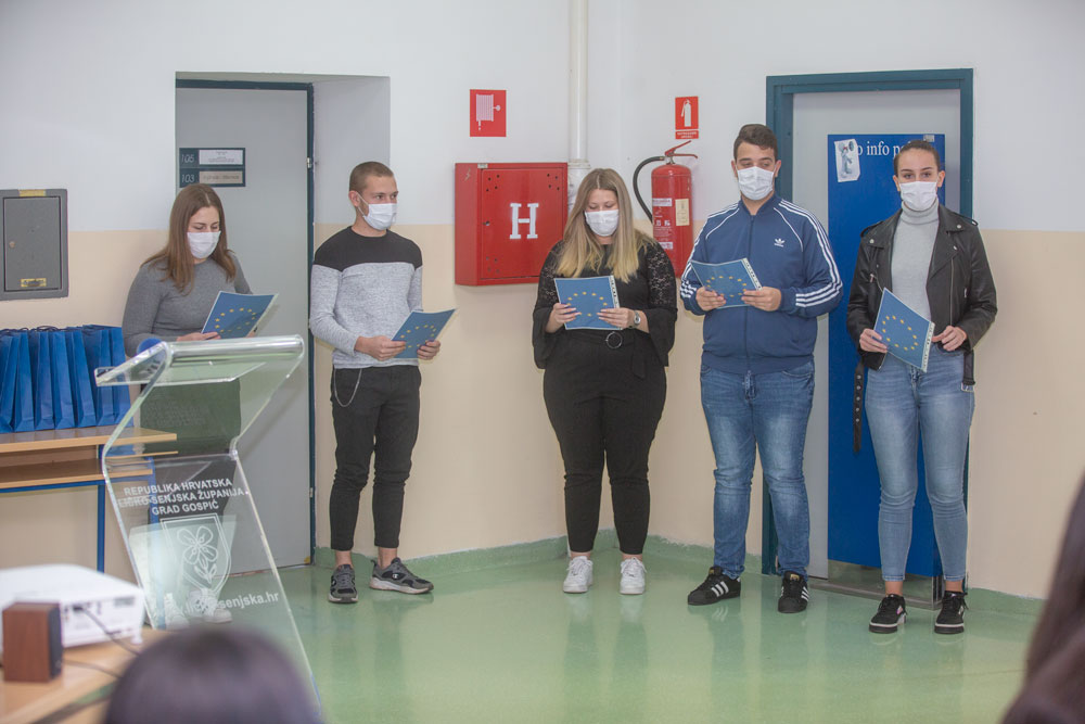 U završnom dijelu svečanosti učenici-ambasadori su dobili diplome i prigodne poklone iz ruku župana dr. Darka Milinovića i ravnatelja škole prof. Ivana Oreškovića.