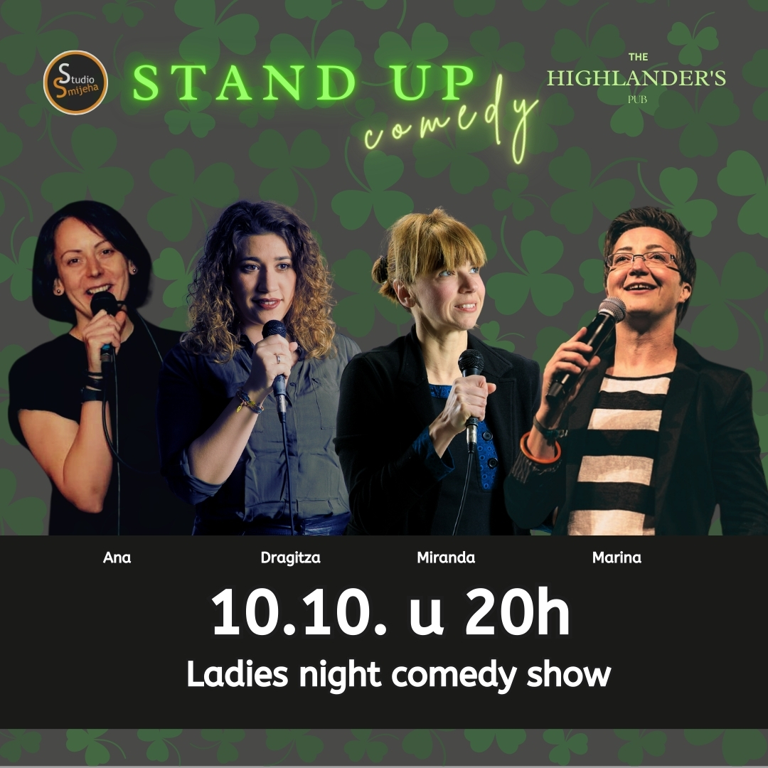 Stand up komedija zadnjih je nekoliko godina postala neizostavan način zabave za ljude diljem Hrvatske i regije, a od srijede, 10. listopada od 20:00 u The Highlander’s Pubu, će i građani i građanke Gospića ponovno moći redovno uživati u toj vrsti zabave. Naime, Studio Smijeha stiže nam ponovo jednom mjesečno u The Highlander’s Pub, a odličnim damama stand up scene pripala je čast da otvore sezonu smijeha svojim Ladies night stand up showom.