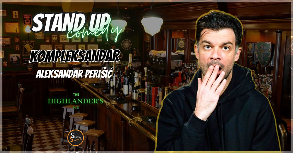 Studio Smijeha ponovno dolazi u Gospić, a ovaj put dovodi jednog od najpoznatijih srpskih komičara i neokrunjenog kralja crnog humora – Aleksandra Perišića. Imali ste ga prilike već gledati u jednom od najgledanijih predstava u Srbiji i Hrvatskoj „Kaj Bre?!“, a sad dolazi u Highlander’s pub sa svojim urnebesnim one man showom „Kompleksandar“.