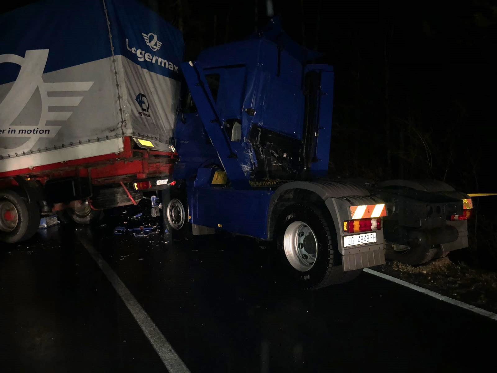 Šleperi su se sudarili u mjestu Drežnička Dubrava, nitko nije bio ozlijeđen, ali teška vozila i njihov sadržaj još nisu uklonjeni s prometnice.