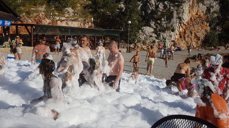 Beach bar Tatinja jučer je organizirao treći pjena party ove sezone. Popularno karlobaško okupljalište mladih ponovno je privuklo velik broj domaćih i stranih gostiju. Ono što ovaj jedinstveni tulum čini privlačnim nisu samo topovi koji izbacuju pjenu već i glazbena play-lista, te kafić i restoran s najnižim cijenama na Jadranu.