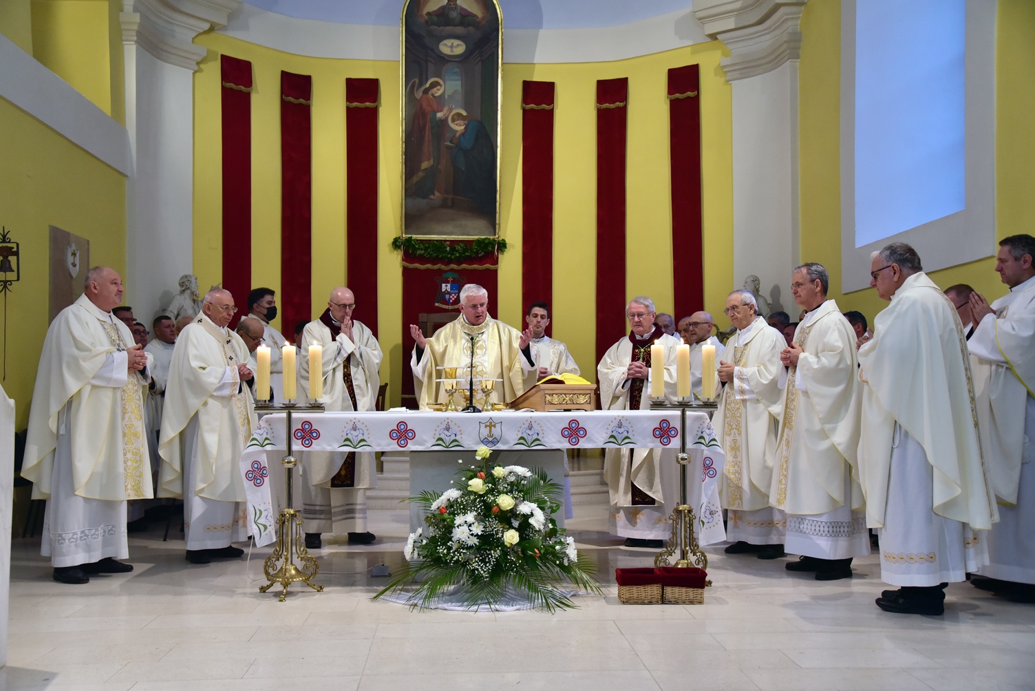 U petak 25.3. 2022 u katedrali Navještenja Blažene Djevice Marije u Gospiću, svečana sv. misa počela je u 17 sati. Na početku je domaći biskup mons. Zdenko Križić predstavio prisutne crkvene dostojanstvenike: apostolskog nuncija u R Hrvatskoj nadbiskupa mons. Giorgia Lingua, zatim predsjednika HBK, nadbiskupa zadarskog Želimira Puljića, riječkog nadbiskupa i metropolitu Ivana Devčića, splitskog nadbiskupa koadjutora i apostolskog upravitelja Porečke i Pulske biskupije Dražena Kutlešu, krčkog biskupa Ivicu Petanjka, biskupa šibenskog Tomislava Rogića i zaželio im dobrodošlicu. Pozdravio je posebno riječkog nadbiskupa koadjutora mons. Matu Uzinića koji će predvoditi misno slavlje. Izrazio je također dobrodošlicu preč. Željku Faltaku, rektoru Bogoslovnog sjemeništa u Zagrebu, izaslaniku kardinala Josipa Bozanića, generalnom vikaru Riječke nadbiskupije mons. dr. Mariu Tomljanoviću, pozdravio je naše kanonike, svećenike, redovnike i redovnice, bogoslove, ministrante, pjevački zbor, mlade i gospođe u narodnim nošnjama, sve nazočne.