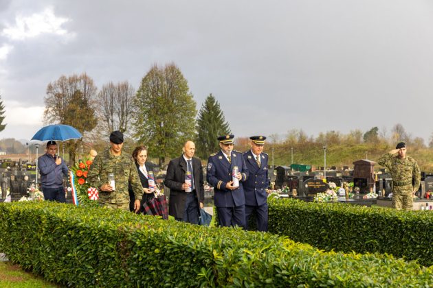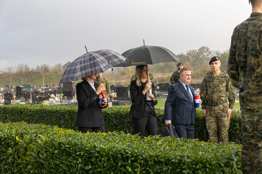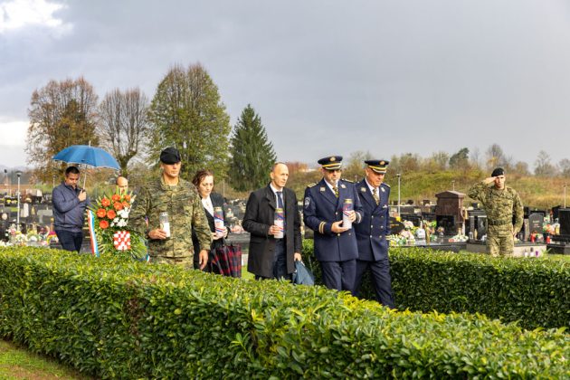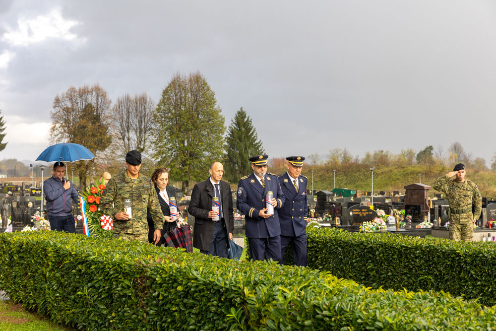 Kod središnjeg križa na groblju sv. Marije Magdalene danas je u povodu blagdana Svih svetih i Dušnog dana polaganjem vijenaca i paljenjem svijeća odana počast svim hrvatskim braniteljima i civilnim žrtvama Domovinskog rata.