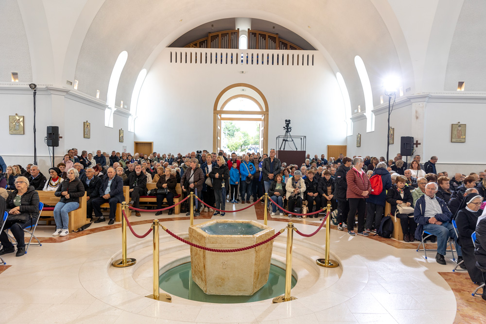 Biskup Štironja se prisjetio prvog gospićko-senjskog biskupa Mile Bogovića i njegovog opisa udbinske crkve kao “bijele golubice”. Naglasio je izazove današnjeg vremena, uključujući zlouporabu slobode i pucnjave u religijske simbole. Govorio je o značenju mučeništva i križa u kršćanstvu te o važnosti molitve i krunice.
