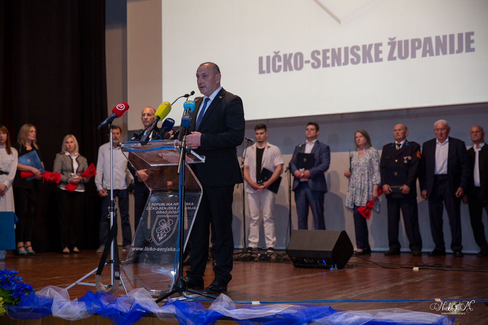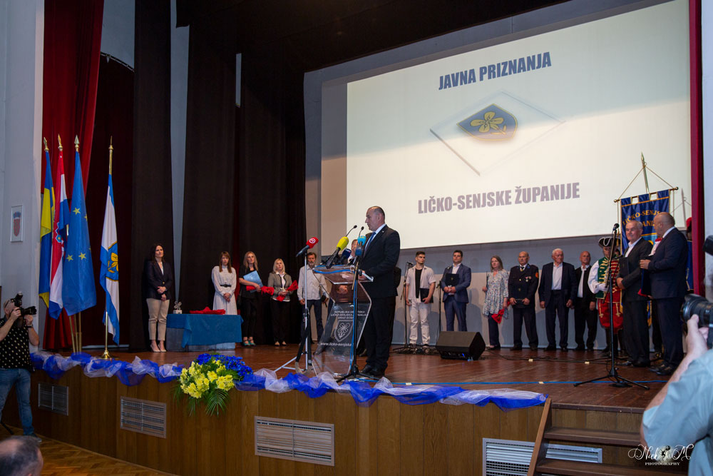 Na svečanoj sjednici uručena su broja priznanja i nagrade, a za počasnog građanina Ličko-senjske županije proglašen je premijer Andrej Plenković koji je u svojem govoru isticao izvrsnu suradnju koju ima s županom Petryjem.