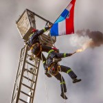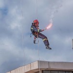 Drugi dio obilježavanja Dana Civilne zaštite organiziran je na Trgu Stjepana Radić gdje su izložena sva materijalno-tehnička pomagala i predstavljeni timovi za žurna djelovanja na području županije. Vrhunac ovog skupa bila je pokazna vježba tijekom koje su s sa 30 metara visine konopcima spuštala dvojica vatrogasaca DVD-a Otočac. Kako je pri tome rekao zapovjednik Vatrogasne zajednice ličko-senjske županije Hrvoje Ostović, otočki DVD ubraja se među tri najstarija vatrogasna društva u Hrvatskoj.