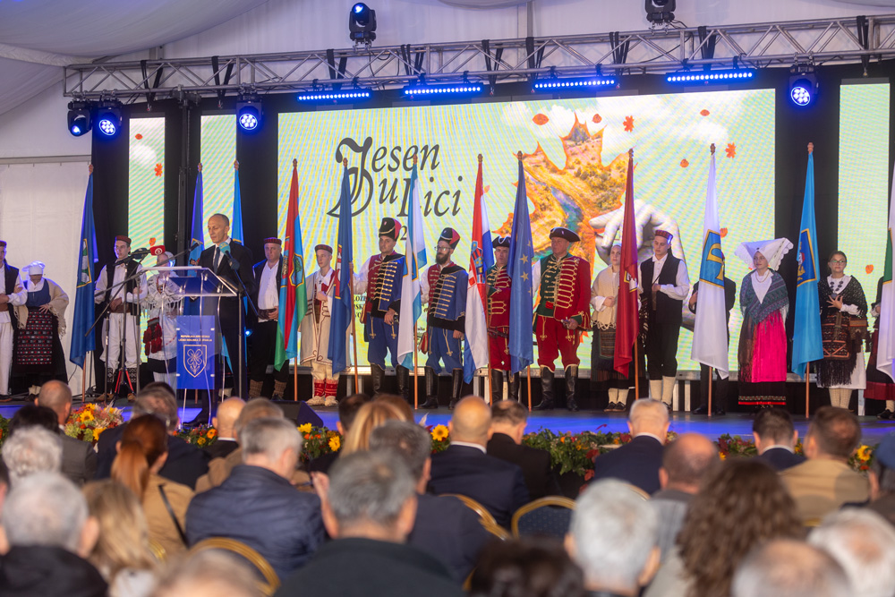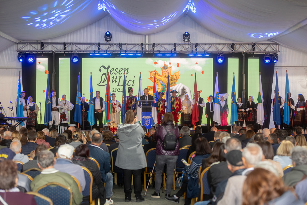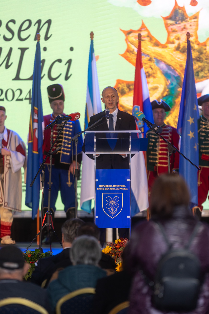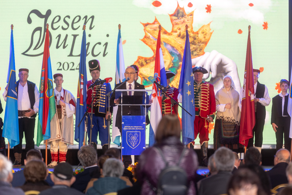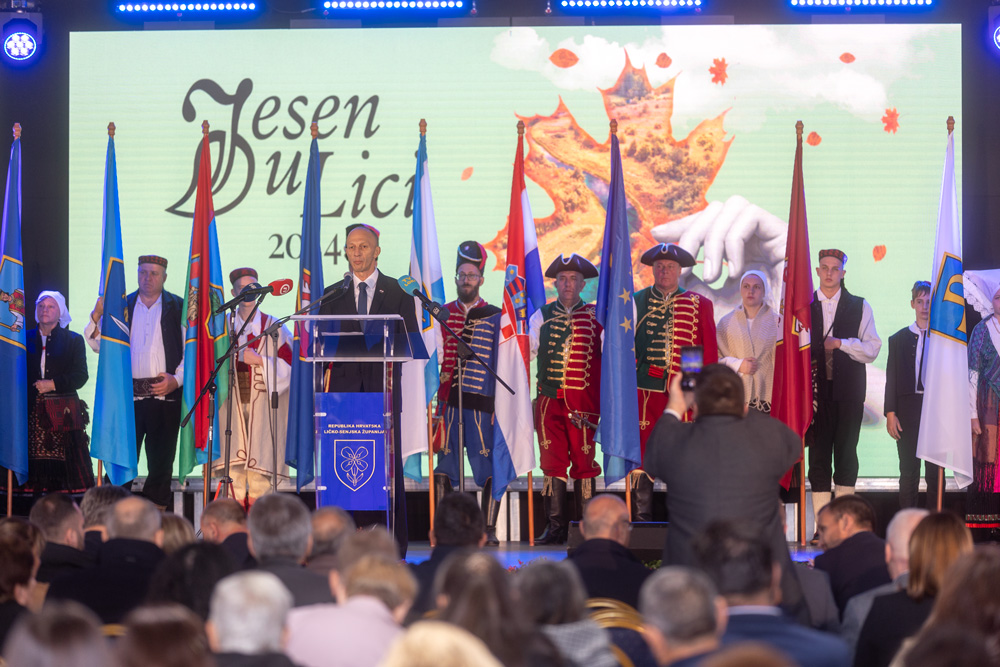 Župan Ernest Petry u svom obraćanju istaknuo je da manifestacija “Jesen u Lici” na najbolji način predstavlja tradicijske vrijednosti i identitet ovog kraja te doprinosi jačanju gospodarskog i turističkog potencijala regije. Ponovio je i važnost danas potpisanog Sporazuma o gradnji nove kaznionice nadomak Perušića, koja će, prema njegovim riječima, doprinijeti demografskoj obnovi i cjelovitom razvoju ovoga dijela Like. “Pjesma govori kako je naša Lika bila i ostala zemlja ponosnih sokolova, ljudi snažnih poput Velebita, ogrlica oko naše jedine Hrvatske. Ovogodišnja Jesen u Lici organizira se pod visokim pokroviteljstvom Vlade RH i premijera Andreja Plenkovića. Namjera nam je predstaviti ljepotu, tradiciju i posebnost ličko-senjskog kraja te promovirati kvalitetu i izvornost proizvoda i zanata iz ovoga dijela Hrvatske, ali i iz svih drugih županija iz brdsko-planinskih područja”, izjavio je Petry. Također, naglasio je kako su Ličani oduvijek bili ponosni i ustrajni u očuvanju tradicije te naslijeđa, što se prenosi iz generacije u generaciju.