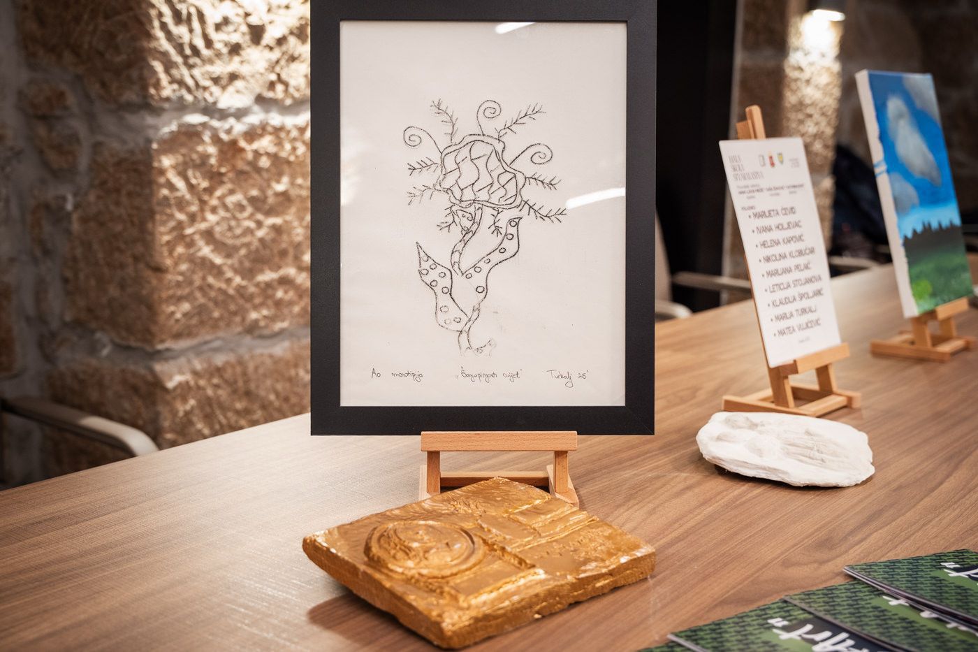 Predsjednica je u nastavku pročitala i dio stručnog osvrta povjesničarke umjetnosti koja je pripremila katalog izložbe. U tekstu se naglašava kako su autori imali potpunu tematsku slobodu, što je rezultiralo širokim rasponom likovnih pristupa. Priroda je ponovno istaknuta kao glavni izvor inspiracije, a radovi mladih članova udruge prepoznati su kao zrela i vrijedna nadogradnja suvremene ličke likovne scene. Posebno je istaknuto i značenje programa Male škole stvaralaštva, čiji radovi upotpunjuju izložbu i svjedoče o kontinuiranom edukativnom radu udruge.