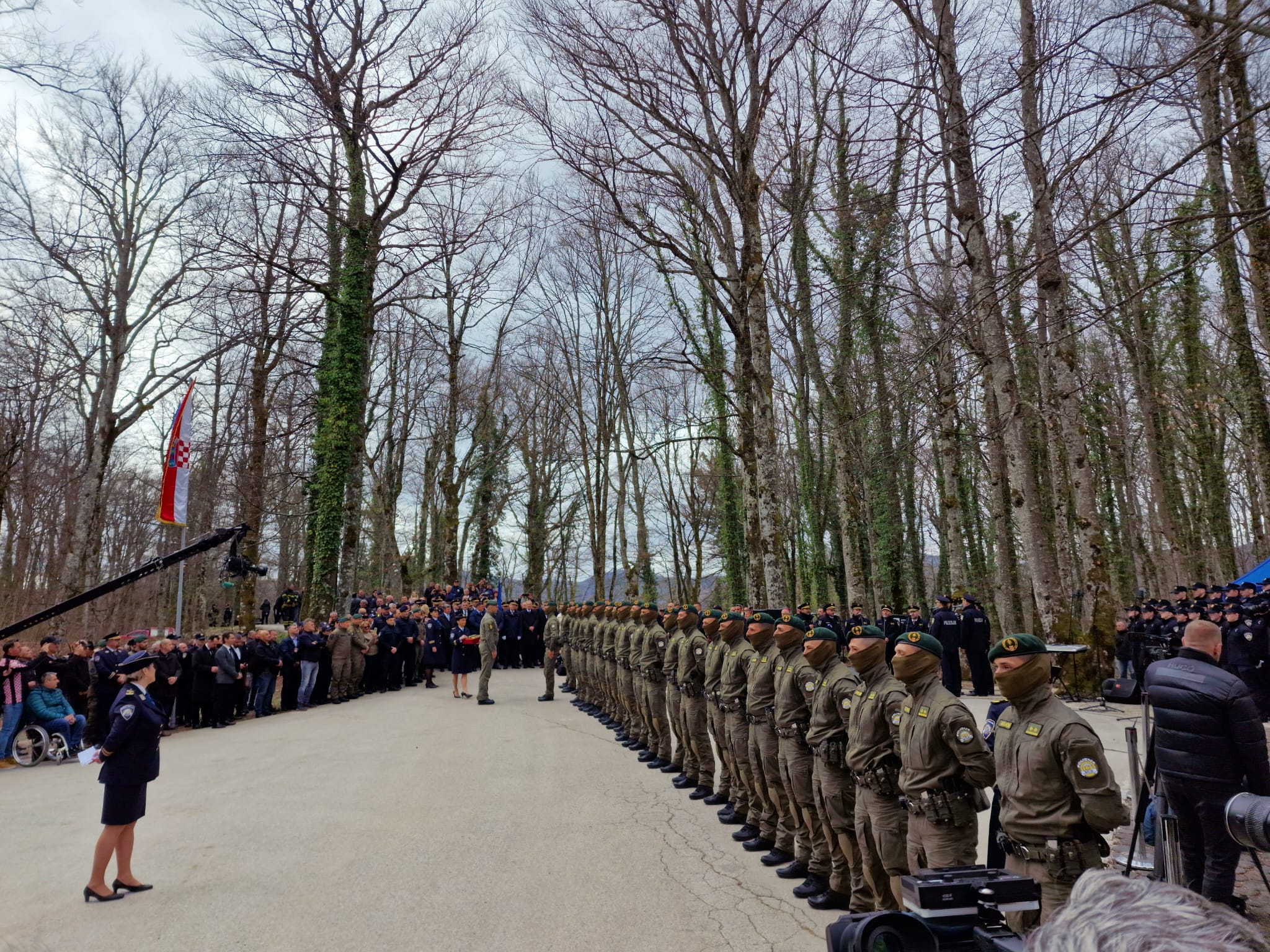 Plitvička Jezera, 31. ožujka 2023. – Polaganjem vijenaca i paljenjem svijeća danas su na Plitvicama brojna izaslanstva svečanom komemoracijom obilježila 32. godišnjicu pogibije Josipa Jovića, prvog hrvatskog redarstvenika i akcije Plitvice.