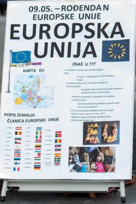 Grad Gospić, Ličko-senjska županija i Društvo „Naša djeca“ grada Gospića pripremili su danas program kojim je obilježen Dan Europe.