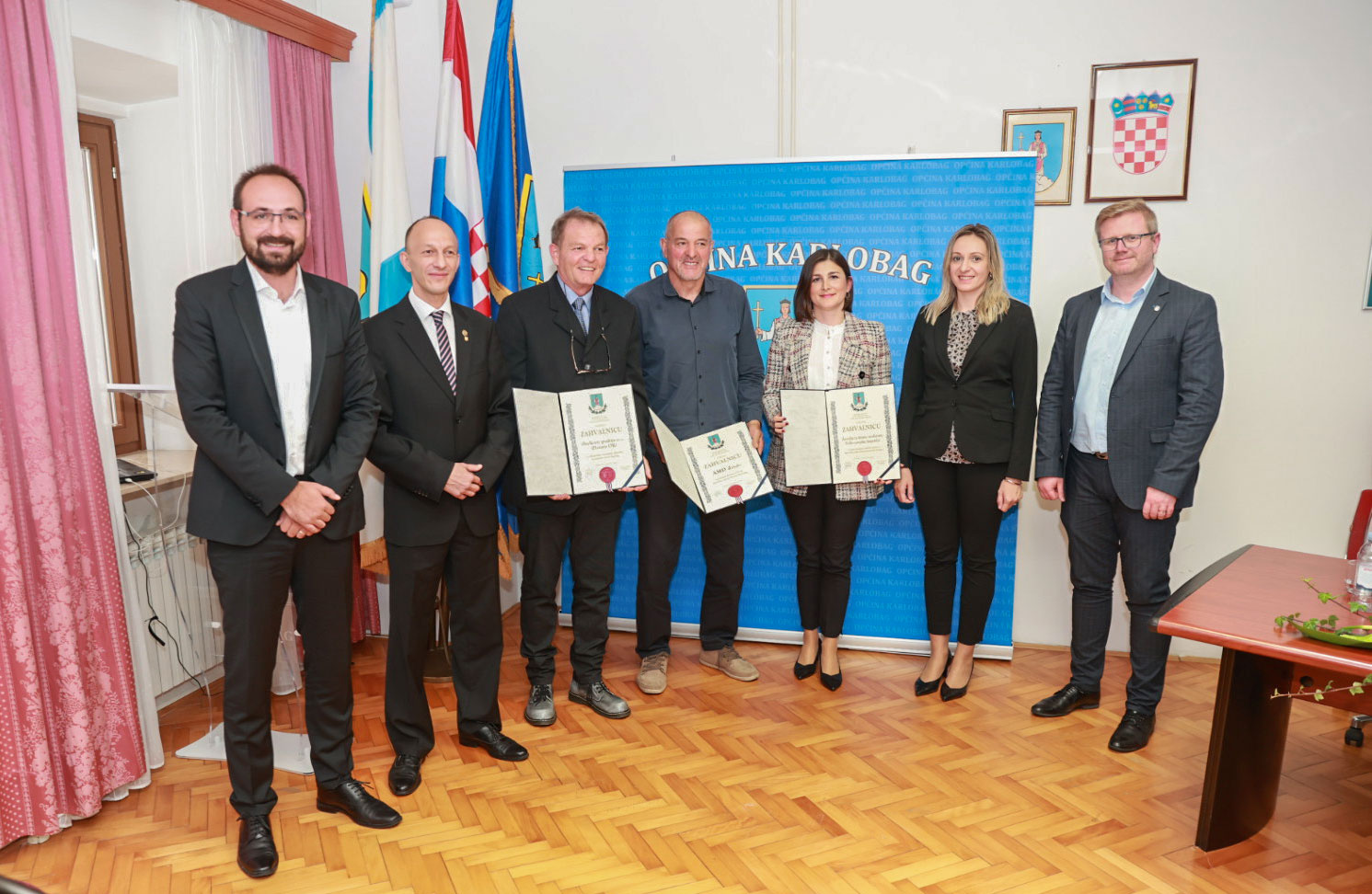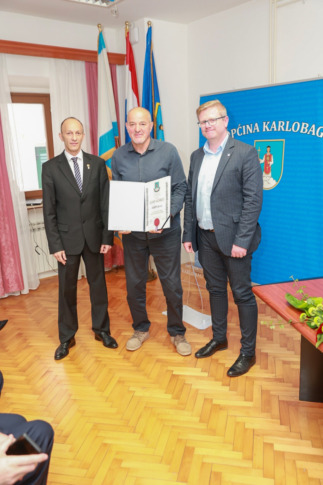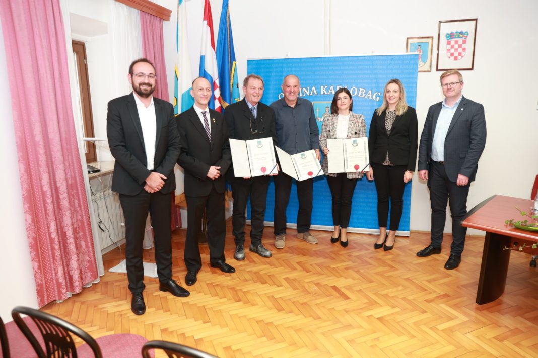 U nastavku svečanosti dodijeljena su javna priznanja Općine Karlobag koje su dodijelili načelnik Smojver i župan Petry.