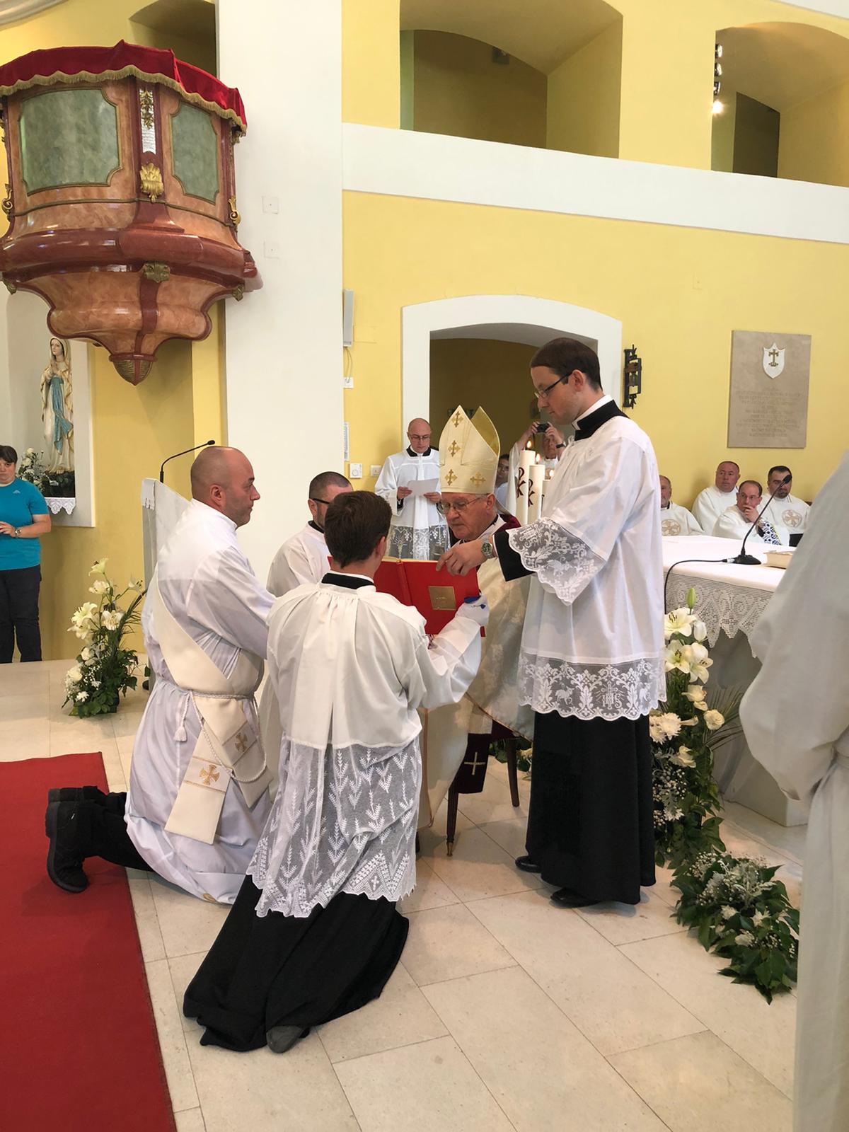 Nakon propovijedi slijedili su obredi ređenja. Litanije Svih Svetih pjevao je bogoslov Kristijan Pajdaković iz Otočca.