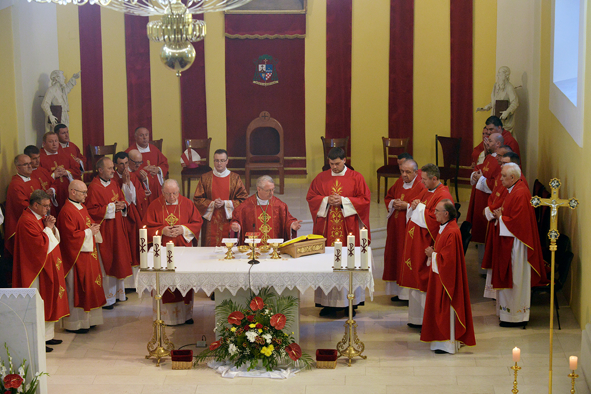 S biskupom su koncelebrirali: biskup u miru mons. Mile Bogović, prepozit Senjskog kaptola mons. Mile Čančar, generalni vikar mons. Marinko Miličević, kancelar i tajnik preč. Mišel Grgurić, senjski župnik preč. Richard Pavlić, rektor Bogoslovnog sjemeništa u Rijeci vlč. Mario Tomljanović, gospićki župnik preč. Mario Vazgeč, ekonom preč. Nikola Turkalj, ravnatelj Caritasa Luka Blažević, preč. Josip Šimatović te svećenici: Josip Štefančić, Mile Šajfar, Silvio Milin, Mile Rajković, Ivica Miloš, Anđelko Kaćunko, Jure Ladišić, Ivica Tolla, Andrija Kekić, Šime Božić, Dino Rupčić, Nikola Prša, Pero Jurčević, Pero Burečić. Asistirali su đakon Mario Kralj, bogoslovi, sjemeništarci i ministranti.
