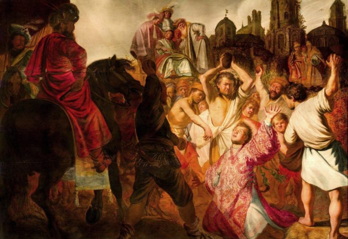 Tako jednog dana, kad im je predbacio što su progonili proroke i ubili Krista, oni ga izvedoše izvan grada i tu ga kamenuju. Stjepan je tako postao prvi mučenik, prvi je prolio krv za Krista. U trenucima umiranja moli za one koji su mu oduzimali život. Umirući, bilježi Sveto pismo, Stjepan je klicao: “Gospodine, ne uzmi im ovo za grijeh!” Sudbina mu je bila vrlo slična Isusovoj. Činjenica je da je ova mučenička smrt još više ujedinila prve kršćane i probudila u njima spremnost čak i krvlju svjedočiti svoje uvjerenje: Isus je obećani Mesija, On je Spasitelj svijeta.