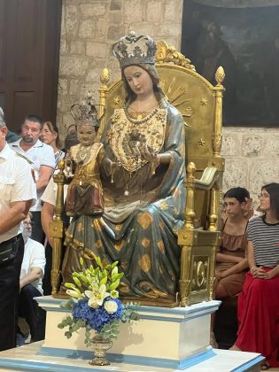 PAG – U župi Uznesenja Blažene Djevice Marije u Pagu danas je svečano obilježena Svetkovina Velike Gospe. Središnje svečano koncelebrirano slavlje u župnoj crkvi Uznesenja Marijina započelo je u 19 sati pod vodstvom mons. Milana Zgrablića, nadbiskupa zadarskog.