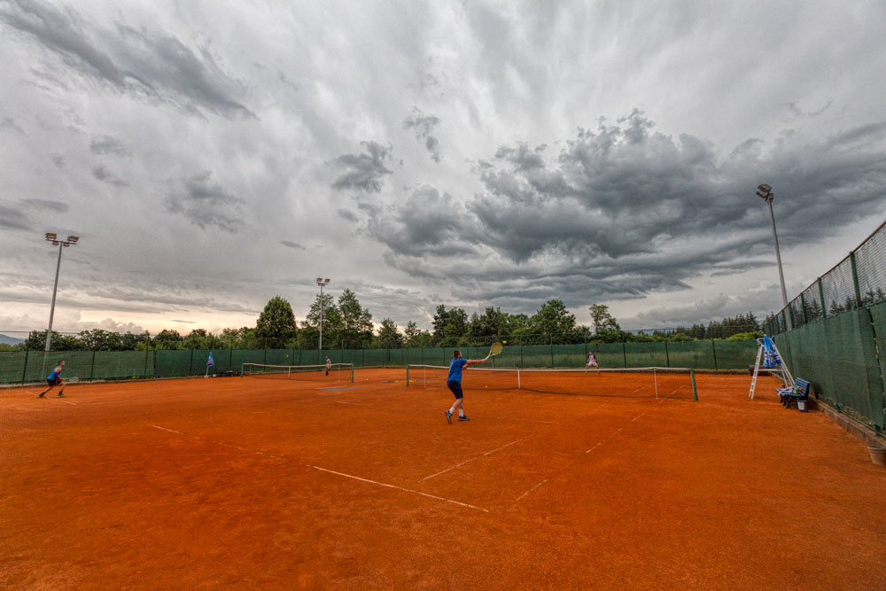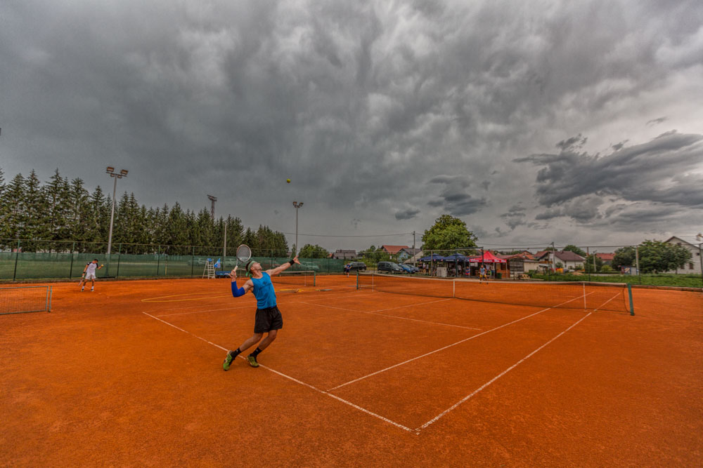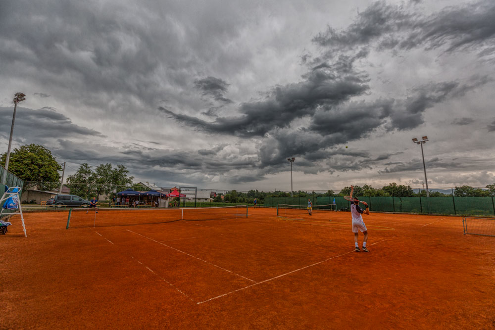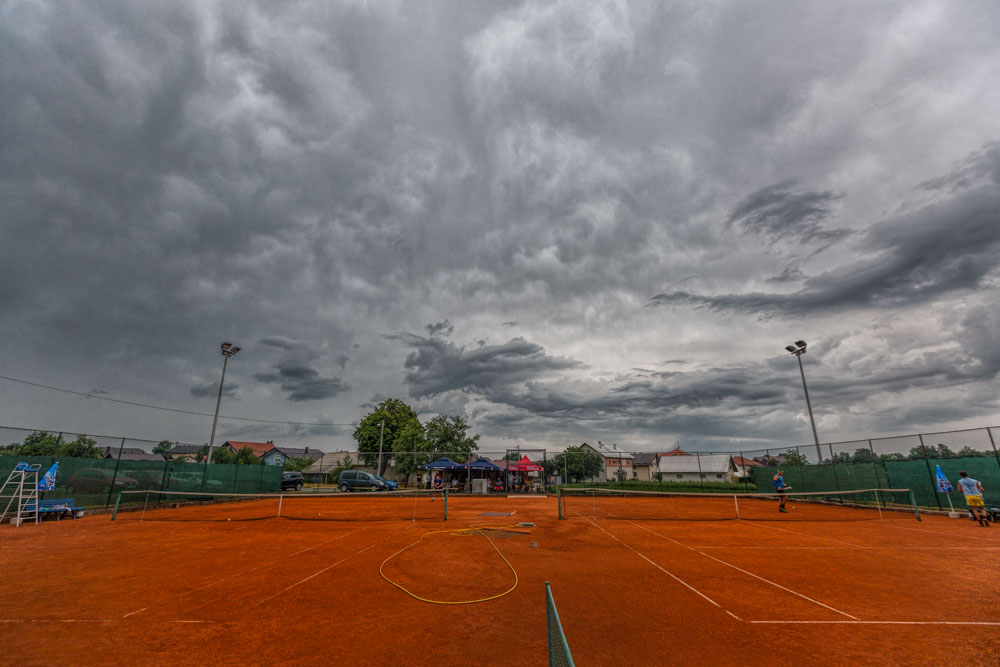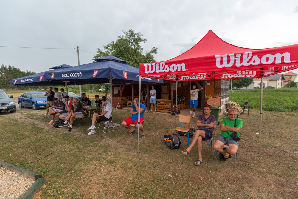 Unatoč grmljavini i kiši, dečki nastavljaju sa turnirom. Hoće li majka priroda ili igrači biti uporniji, tek ćemo vidjeti! Ukoliko uporni dečki nastave s turnirom, ta se igra može slobodno nazvati water-tenis, kao nova sportska disciplina. Također stasala u Gospiću.