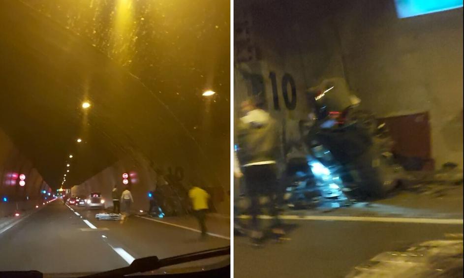 Jedno se vozilo zaletjelo u rubnjak i udarilo u zid u tunelu, a snimka čitatelja pokazuje kolika je silina udara bila.