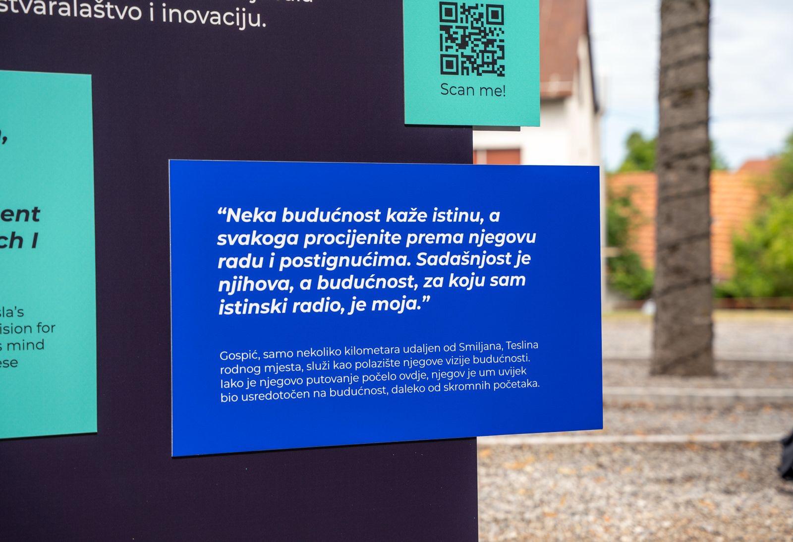 Smiljan i Gospić, kao rodno mjesto Nikole Tesle, mjesto su predstavljanja projekta, a danas otkrivena lokacija nosi Teslinu poruku „Neka budućnost kaže istinu, a svakog procijenite prema njegovom radu i postignućima. Sadašnjost je njihova, a budućnost, za koju sam stvarno radio, je moja.“