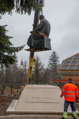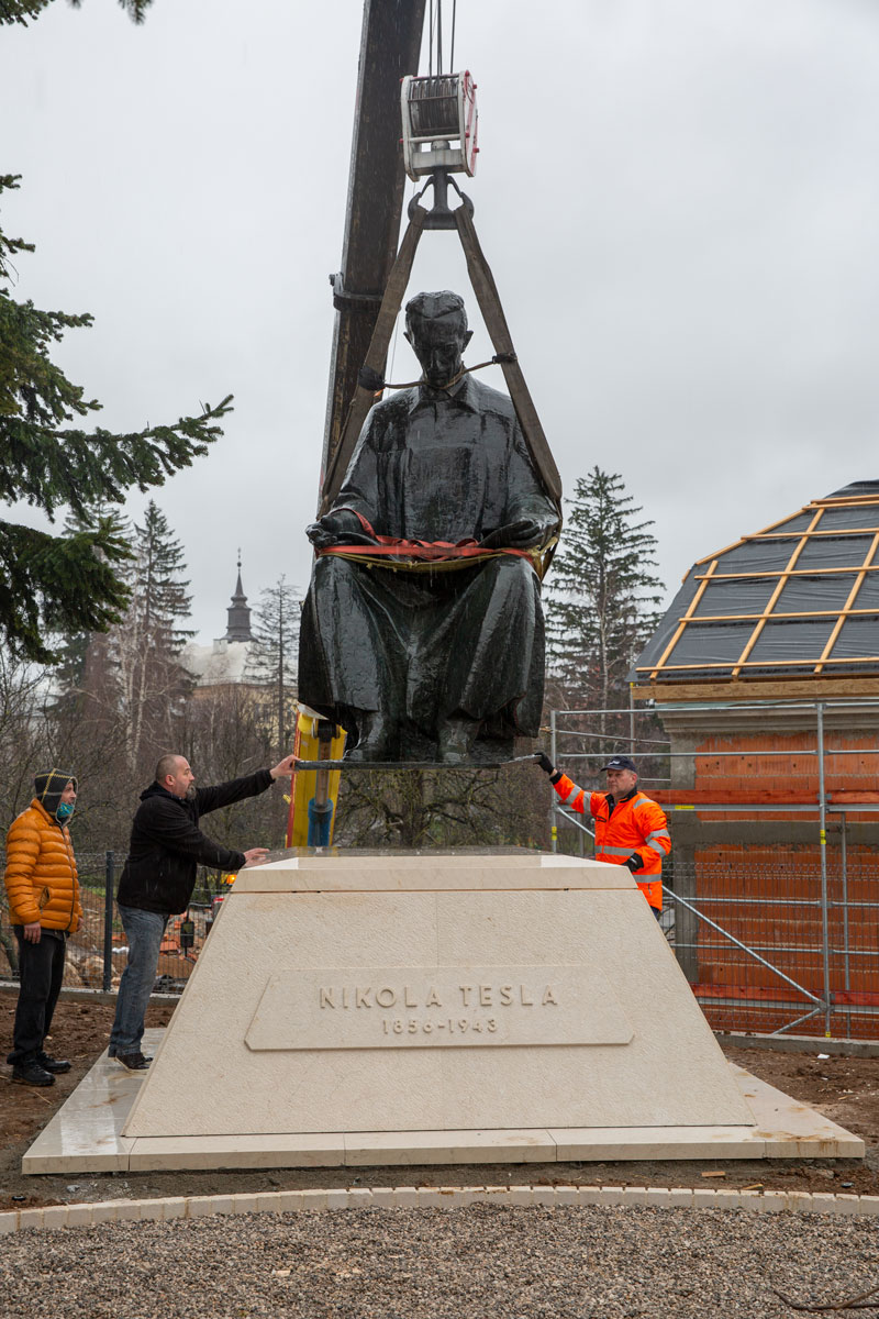 U angažanu zagrebačke Ljevaonice umjetnina akademije likovnih umjetnosti spomenik Nikoli Tesli dovezen je danas i postavljen na istoimenom trgu. Govoreći o ovome djelu kipara Frana Kršinića direktor ljevaonice Ivan Mačešić Jurina istaknuo je činjenice po kojima se ovakav spomenik velikom izumitelju nalazi danas kod slapova rijeke Niagare u SAD i kod zgrade Elektrotehničkog fakulteta u Beogradu.