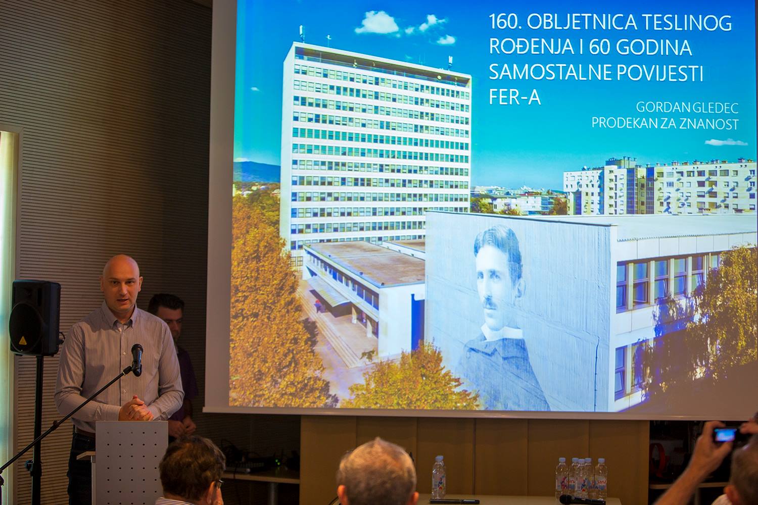 -Prije dvije godine vodile su se u Hrvatskom sabora dosta jalove rasprave oko Teslina imena i njegovog brendiranja. Slično je u nekoliko navrata bilo i na Gradskom vijeću grada Gospića. Sada bi naš najveći problem trebao biti povratak spomenika Nikole Tesle u Gospić, rad Frana Kršinića. Za to je već odabrana lokacija ispred zgrade KIC-a. U dogovoru smo sa Ministarstvom kulture jer želimo da budući kompleks sadržajno i estetski bude u skladu s imenom i djelom našeg velikog sugrađanina. Ono što će danas reći struka jest to da vrijeme prolazi, a djela Nikole Tesle stalno dobivaju na važnosti. Iznimna djela koja je ostavio čovječanstvu uvijek su aktualna, ona ne blijede. Rođen je ovdje u Smiljanu, a njegovi izumi pripadaju svjetskoj ostavštini. Građani Gospića su iznimno ponosni na Teslu jer je rođen ovdje, a prvi kontakti sa učenjem i prva otkrića polaze upravo iz Gospića, rekao je gradonačelnik Krmpotić. Skup je pozdravio i dekan FER-a prof. dr. Mislav Grgić koji je potom održao i prvo predavanje na ovome simpoziju.