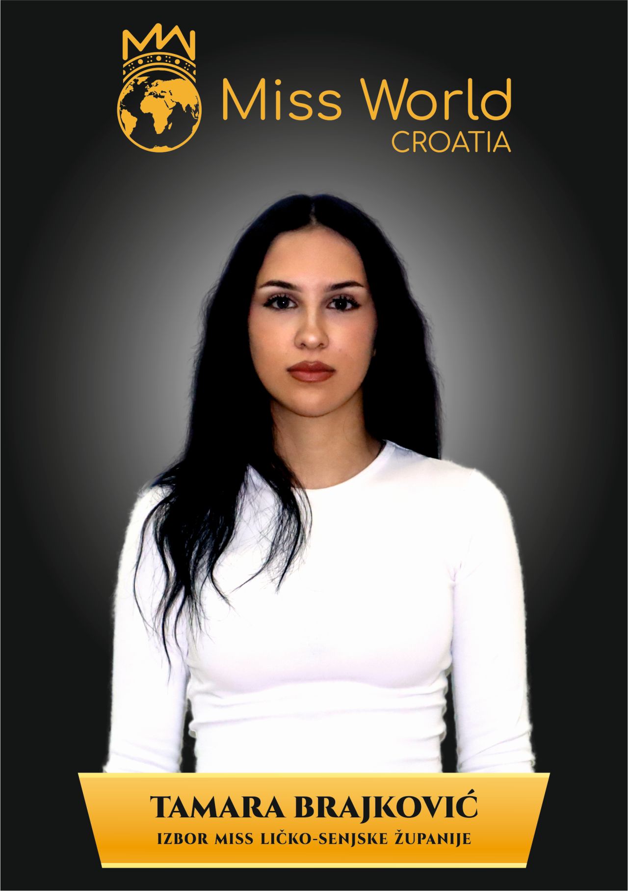 - TAMARA BRAJKOVIĆ-Ima 20 godina, dolazi iz Štikade (općina Lovinac) i visoka je 170 centimetara. Završila je srednju strukovnu školu u Gospiću. Tamara je ljubiteljica psihologije, šminkanja i stvaranja sadržaja za društvene mreže. Opisuje se kao pristupačna, otvorena i empatična osoba. U životu je motivira želja da ostvari svoje ciljeve i učini roditelje ponosnima. San joj je postati model, iz čega proizlazi i njen moto: “Trud je put do snova.” Govori engleski jezik.