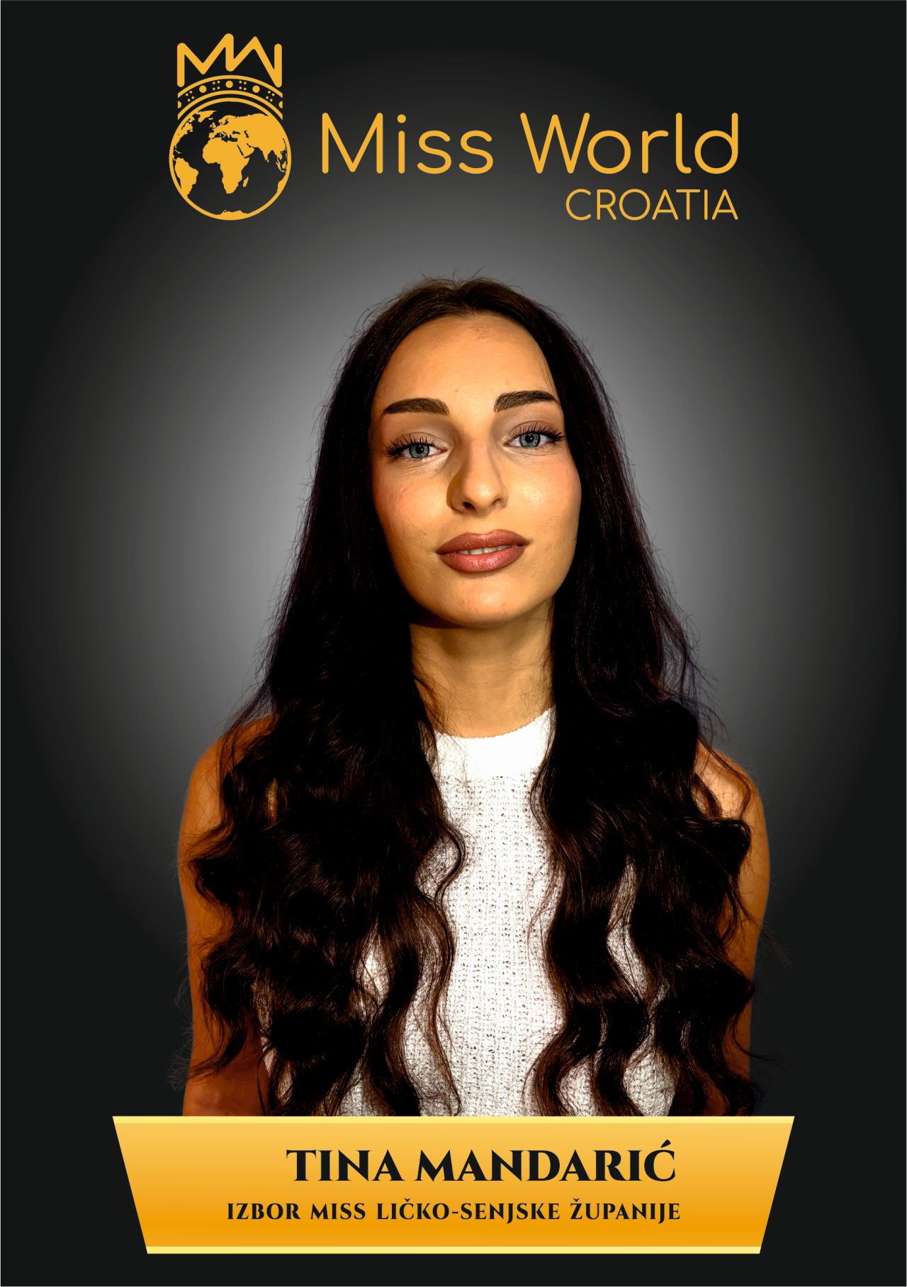 - TINA MANDARIĆ-Ima 19 godina, dolazi iz Otočca i visoka je 171 centimetar. Tina je ambiciozna studentica Pravnog fakulteta u Zagrebu. Njena ambicija je karijera u europskoj politici, sa željom rada u Europskom parlamentu, kako bi pridonijela stvaranju pravednijeg društva. Svestrana je: bavi se fotografiranjem i šivanjem, te voli putovanja i kuhanje. Njen moto je: „Najveća pobjeda nije nad drugima, nego nad vlastitim ograničenjima.“ Tečno govori engleski i njemački jezik.